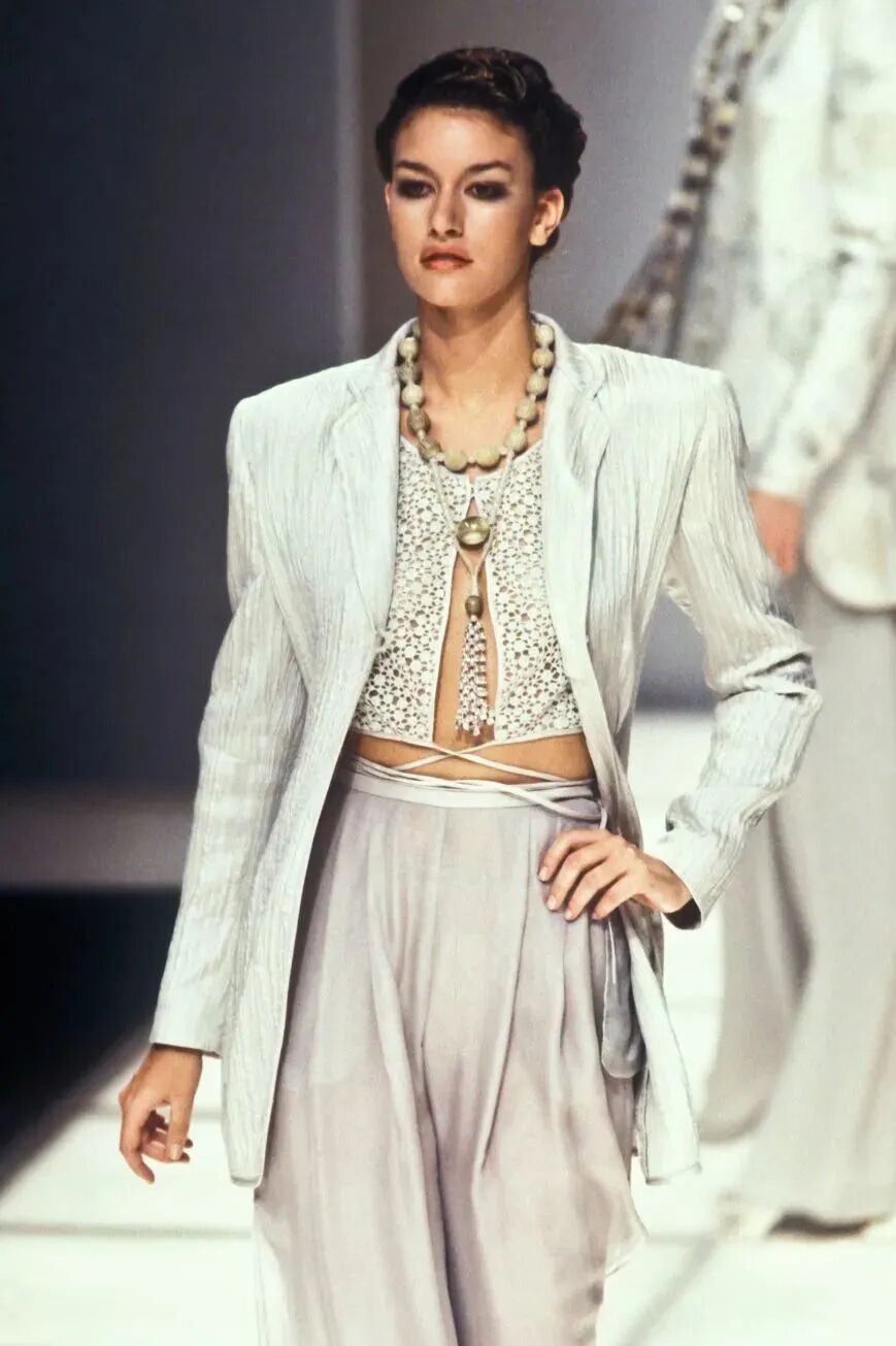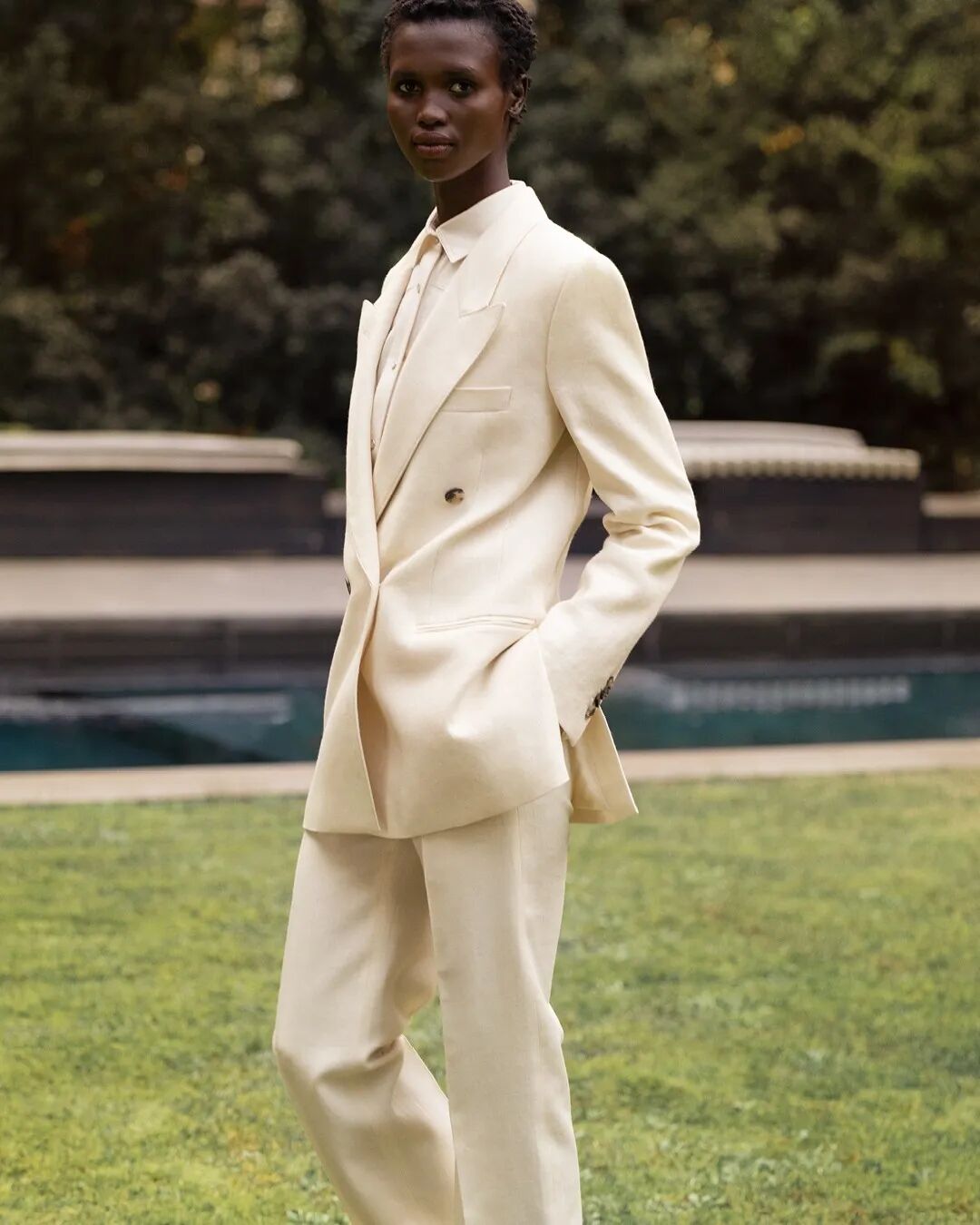 穿Armani西装的Quiet Luxury,只需要有力的肩线、卷起的袖子和一个深V,剩下的留白是为了价值不菲的腕表和珠宝。但对于我们来说,时装的分寸势在必行。