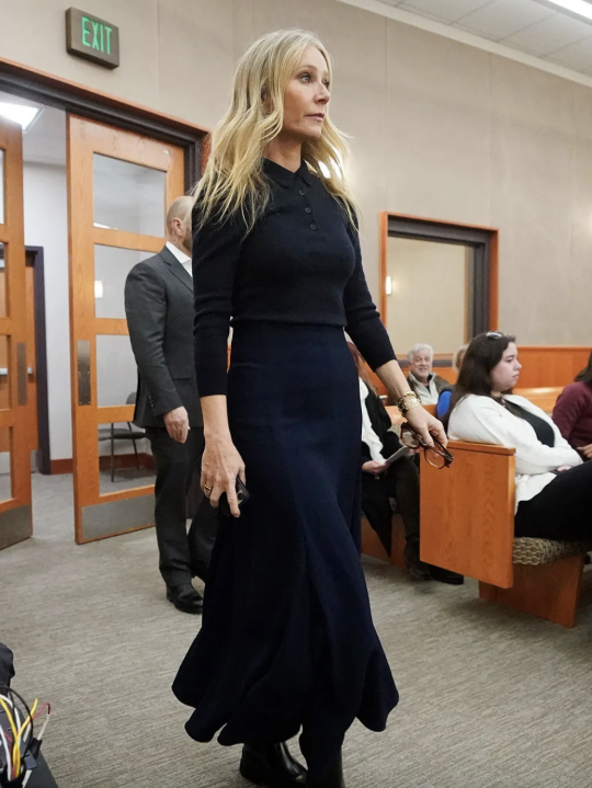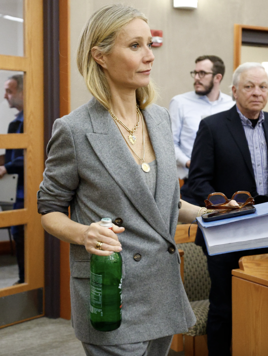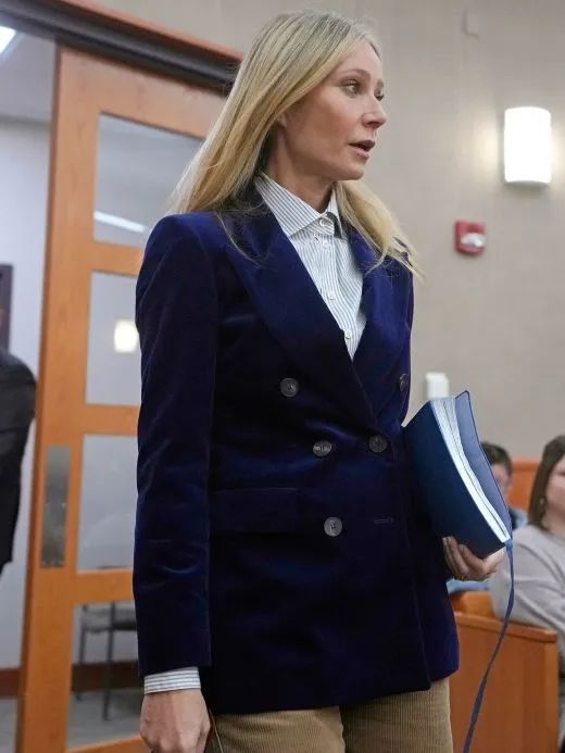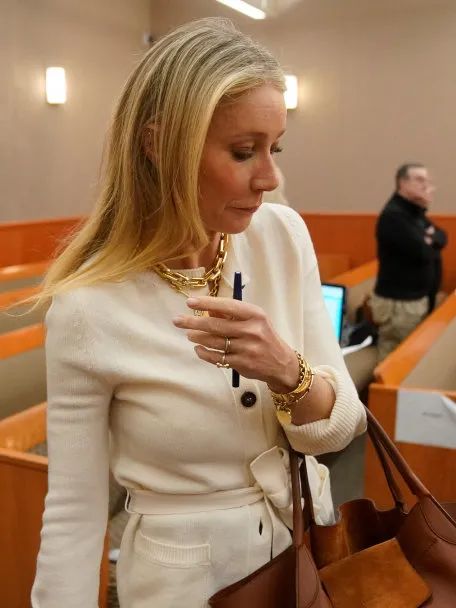 2023年最不走寻常路的造型出圈方式,大概就是Gwyneth Paltrow庭审造型了吧,甚至被《纽约时报》以core命名为“Courtcore”。做工精良的The Row大衣、来自经典老钱品牌的Ralph Lauren蓝色丝绒西装、老式Caddis金边眼镜,以及看似不起眼但售价30美元的玻璃瓶饮用水,Gwyneth Paltrow似乎在用穿搭宣告“我无罪”。