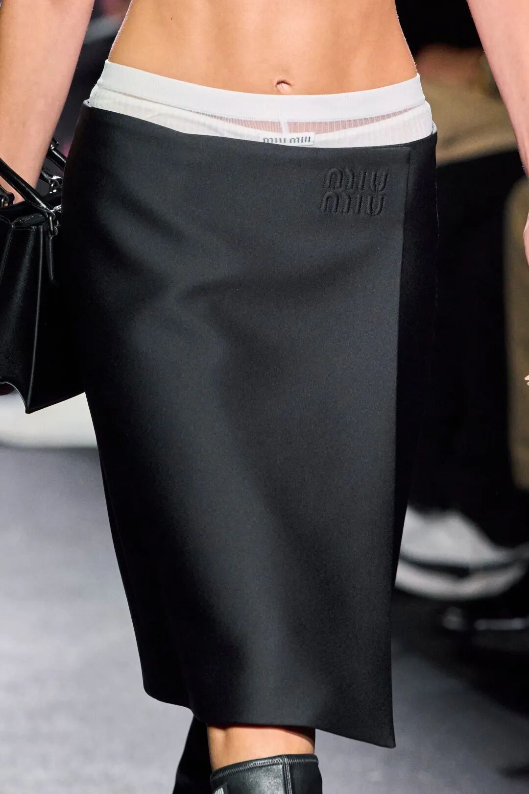 打底时尚在Miu Miu早期设计中就已经可以看到雏形。Miuccia将少女隐秘的心思放在T台上,即使轻薄的薄纱下就是内衣,也能让你感受到不带情欲的时髦。