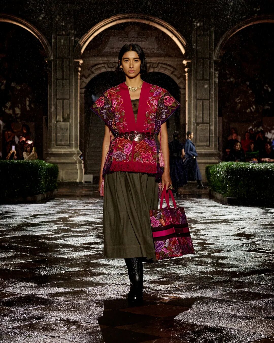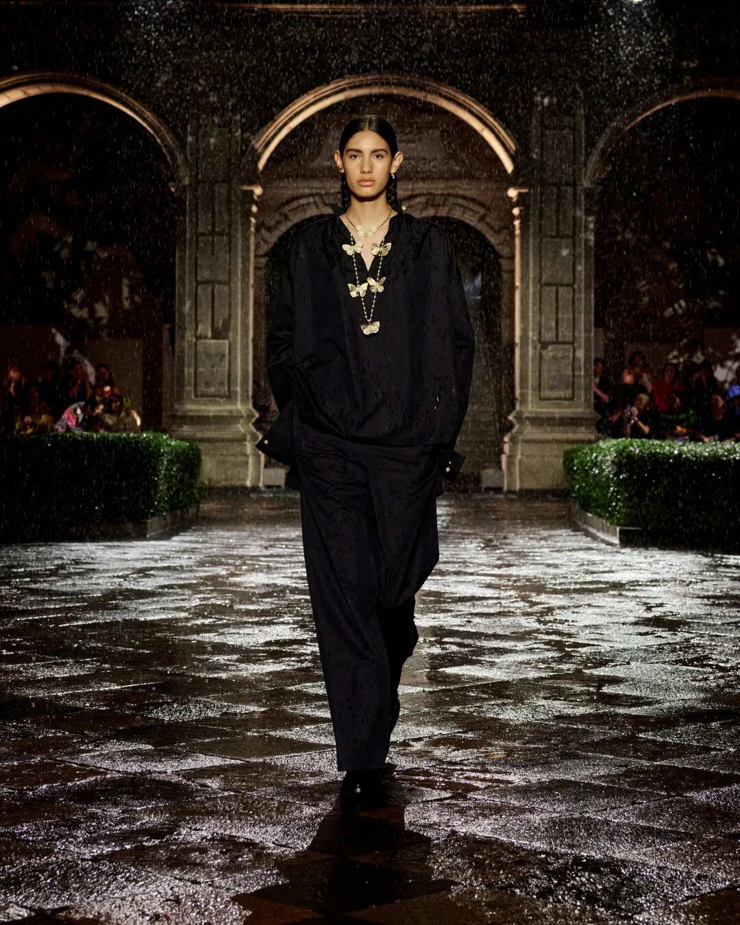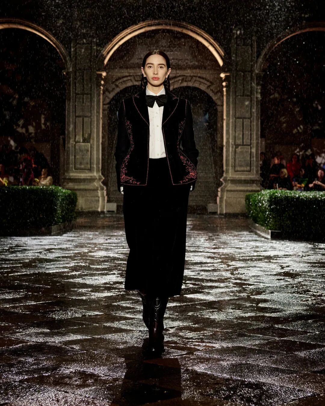 除了与艾琳娜的合作,此次早春成衣系列也深情致敬了墨西哥艺术家弗里达·卡罗(FRIDA KAHLO),通过她的标志性形象展现了与墨西哥文化的紧密联结。弗里达·卡罗一直以来擅长用服装表达个人态度,服装于她已经成为了象征、宣言与主张的化身。她自十九岁起便穿着男士西装三件套,以此来突破传统女性形象,宣示高于固有认知之上的独特精神。玛丽亚·嘉茜娅·蔻丽也从她打破性别界限的照片中采撷了灵感。