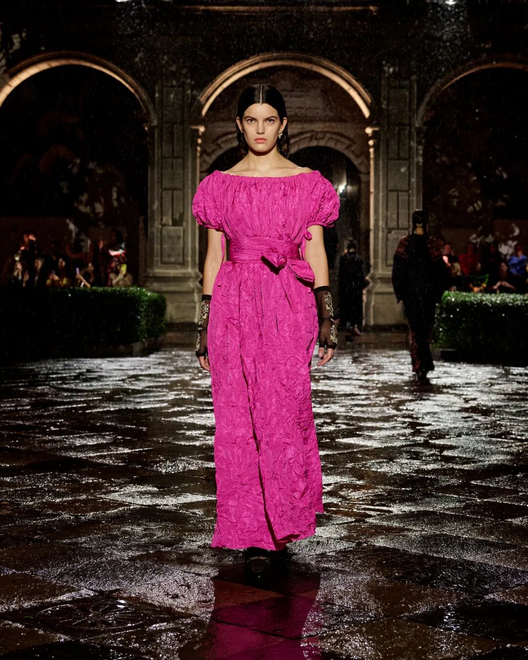 此次发布秀的选址是圣伊德方索学院博物馆(ANTIGUO COLEGIO DE SAN ILDEFONSO),也是弗里达·卡罗曾经修习过的地方,她在这里遇见了其导师及一生挚爱——迭戈·里维拉(DIEGO RIVERA),这一具有象征意义的地点也赋予了这场成衣秀更多的价值。