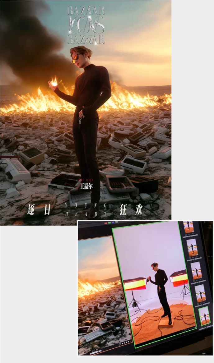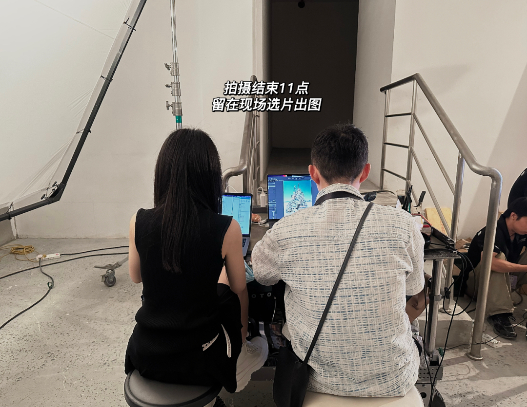 这次的拍摄惊险刺激,AI、时间、艺人需保密的妆造、现场匹配、全合成……所有的不确定因素融为一体,随时会翻车。