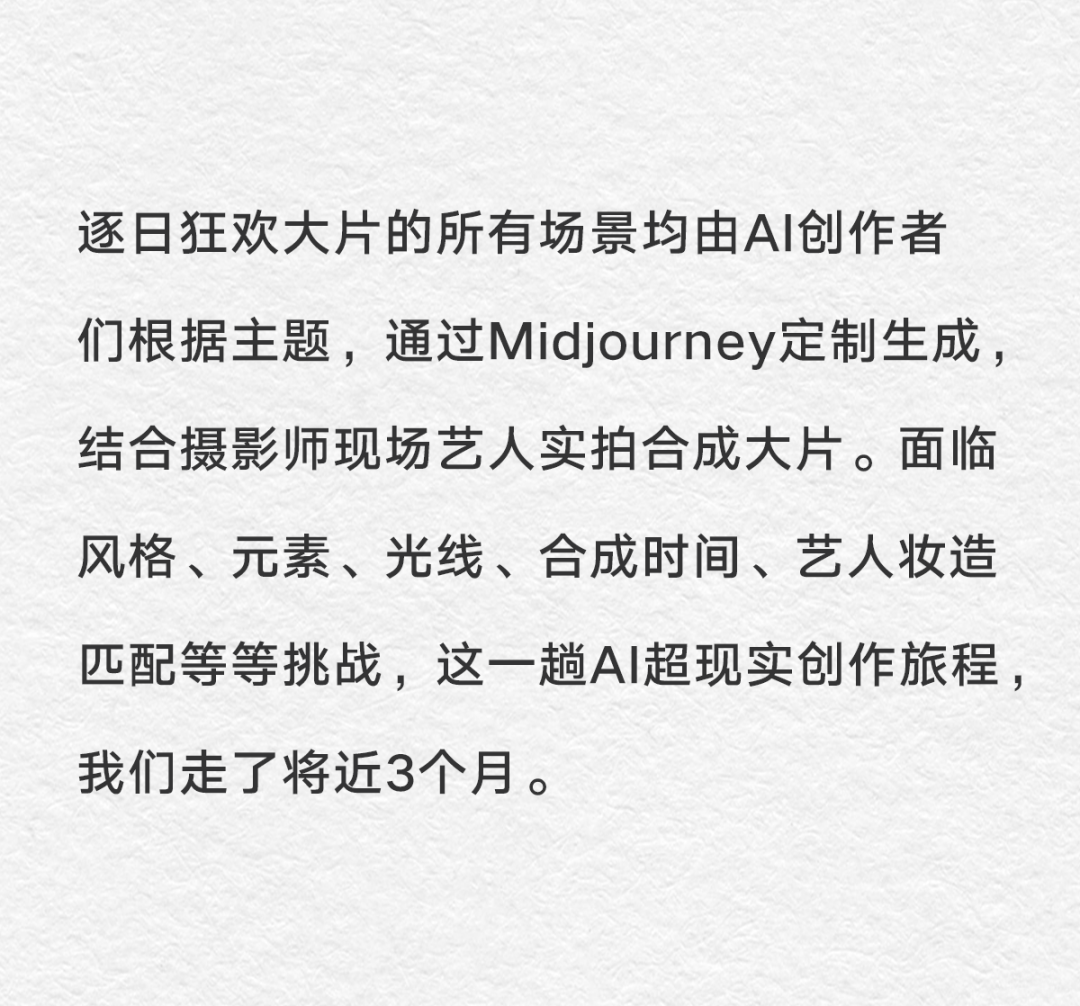第一次尝试用超现实AI合成形式拍摄活动现场大片和视频,前期面临许多外界和自我的质疑和压力。