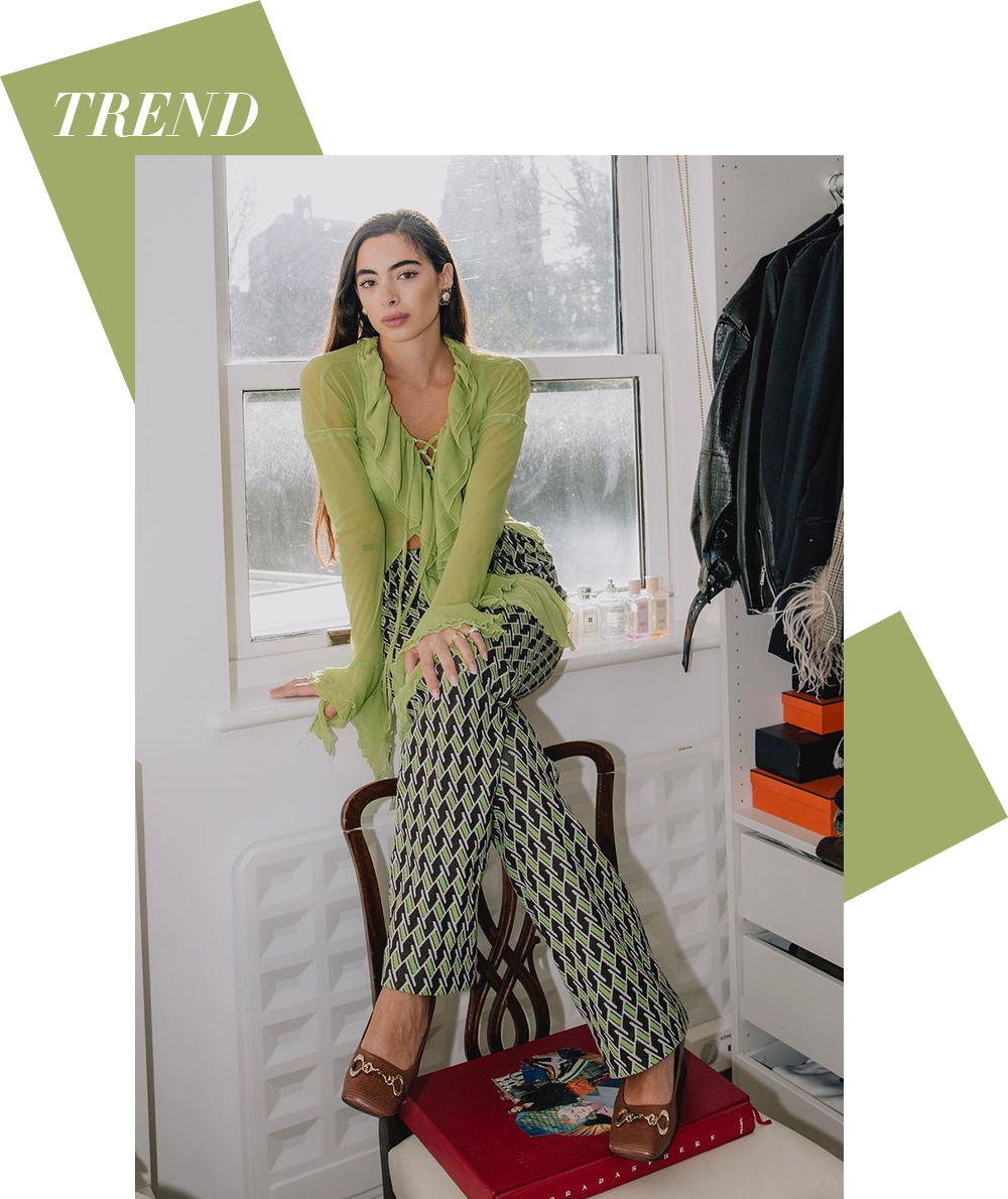 锋利的尖头高跟鞋是Looney搭配露腿下装时的不二之选,不仅能轻松拿捏复古氛围,还可以从视觉上不着痕迹地拉长腿部线条,一箭双雕。