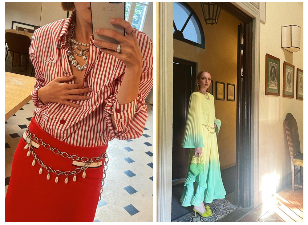 她戏称这种氛围感为“rich auntie”(富有的阿姨)——精致,带有20世纪末的风情韵味。而这份精致,是细节到包与鞋需要互相匹配的讲究,是Labanca从小在意大利长大所浸染的风格印记。