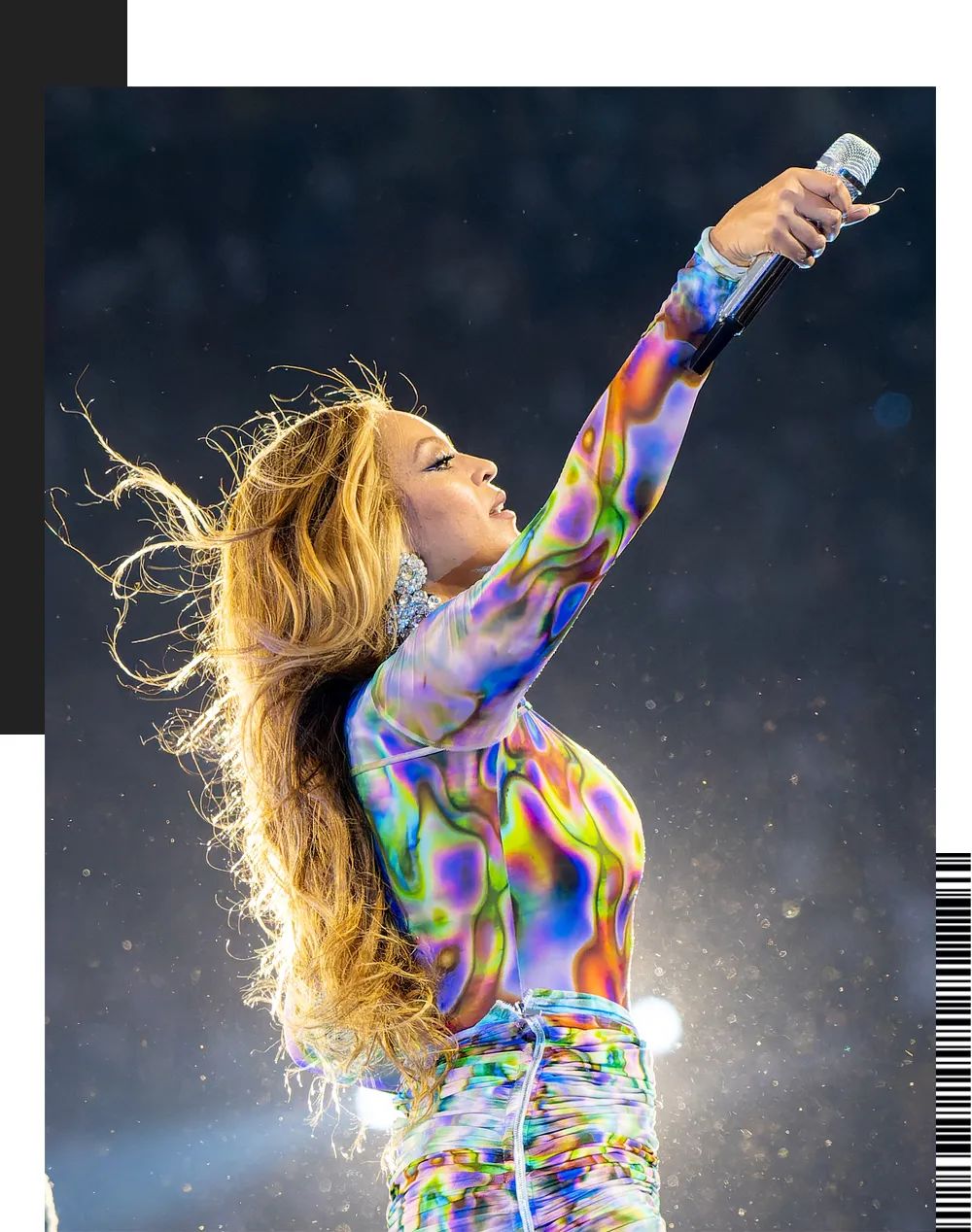演唱会中,Beyoncé将大家带回到了那个充满魅力、“放纵”的时代。在她的文艺复兴之旅中,不是单一追求品牌高定、超季、首穿的服装,而是在受到上世纪迪斯科文化的影响,将未来主义、自由之爱、打破界限等自己想要传达的理念充分融入到自己的每一件演出服装中。