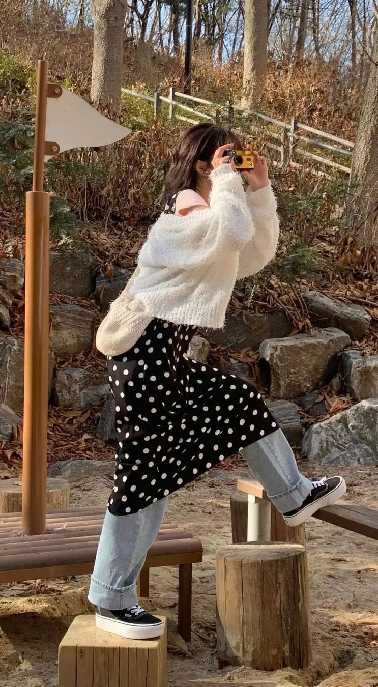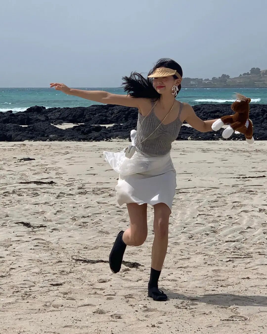 当我们置于现今互联网社交媒体语境,如今再次提到韩国女孩,“氛围感”总是会作为联想词自动浮现。当翻阅起韩国博主的社交账号,是否总有同一种不可言喻的感觉?尽管她们的场景、穿衣、生活不尽相同,却殊途同归,总是有着同一种“韩系氛围”。这些抓人眼球的氛围感很难用具体的文字去描述去复刻,非要说的话,那就是韩女深谙“用不完美来衬托美”的真谛。T恤翻折时自然的褶皱、打破卷发整齐弧度的发丝、大笑时挤出来的皱纹······无数仿佛不经意流露的不完美,构成了氛围感的实体。