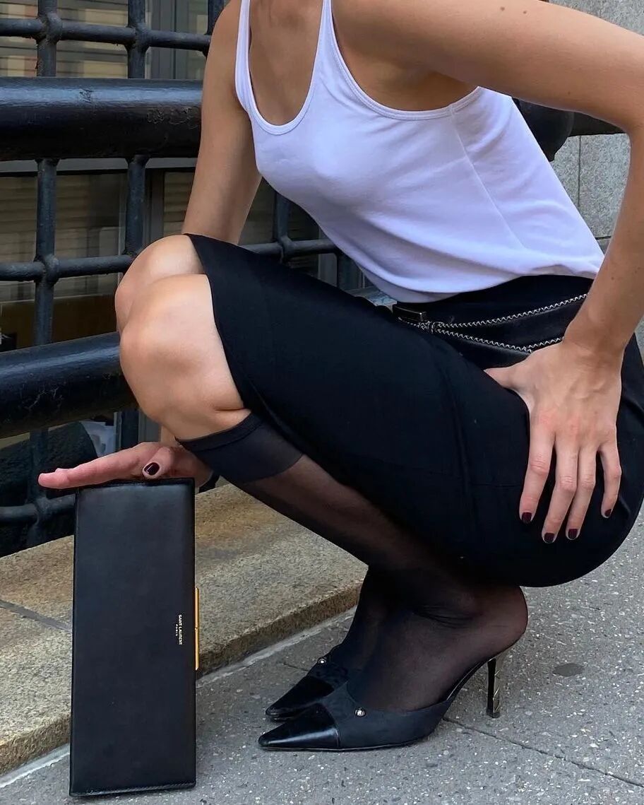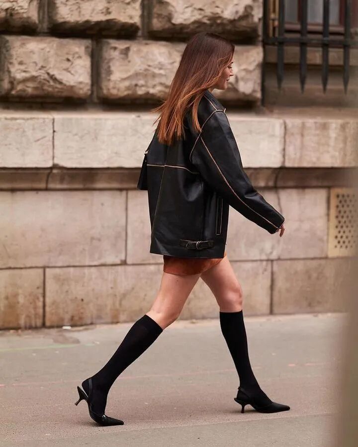简而言之,比起中规中矩的连体款丝袜,今年秋冬不妨试试及膝款,喜欢休闲风格的可以搭配运动鞋,钟情性感路线的就踩一双slingback,都能潇洒出街时髦满分!