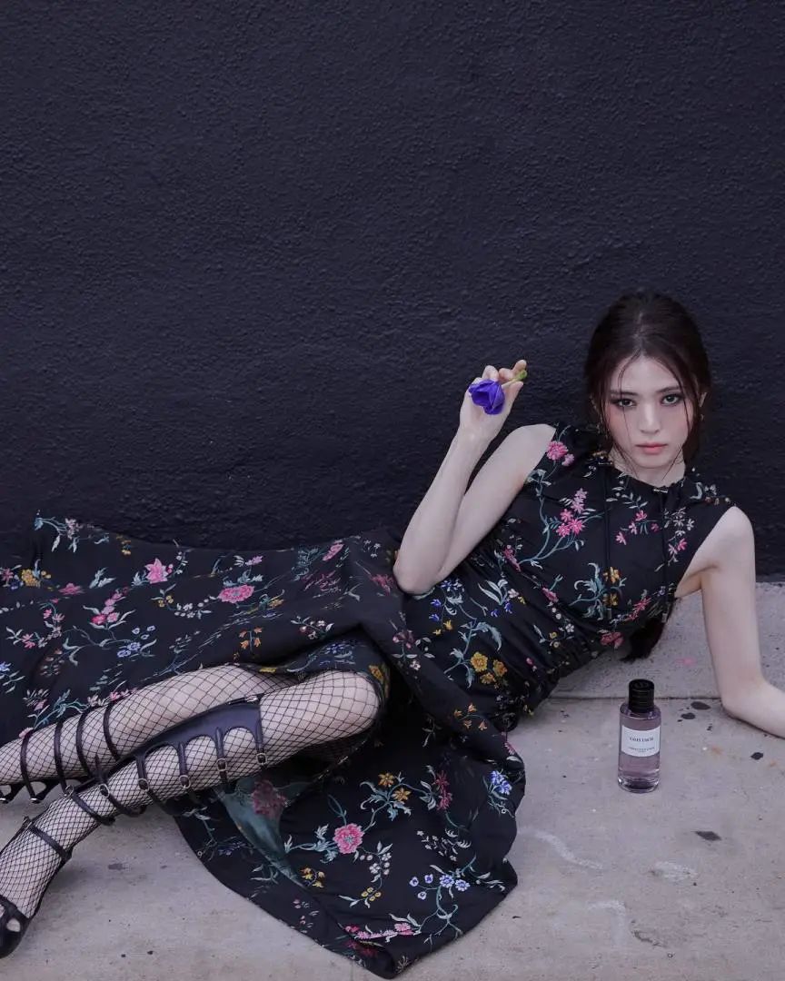 之前,韩素汐为Dior拍摄美妆画报时,也曾以一袭缀饰繁花潋滟的连衣裙搭配渔网袜,暗黑魅惑的风情呼之欲出,美得让人挪不开眼。