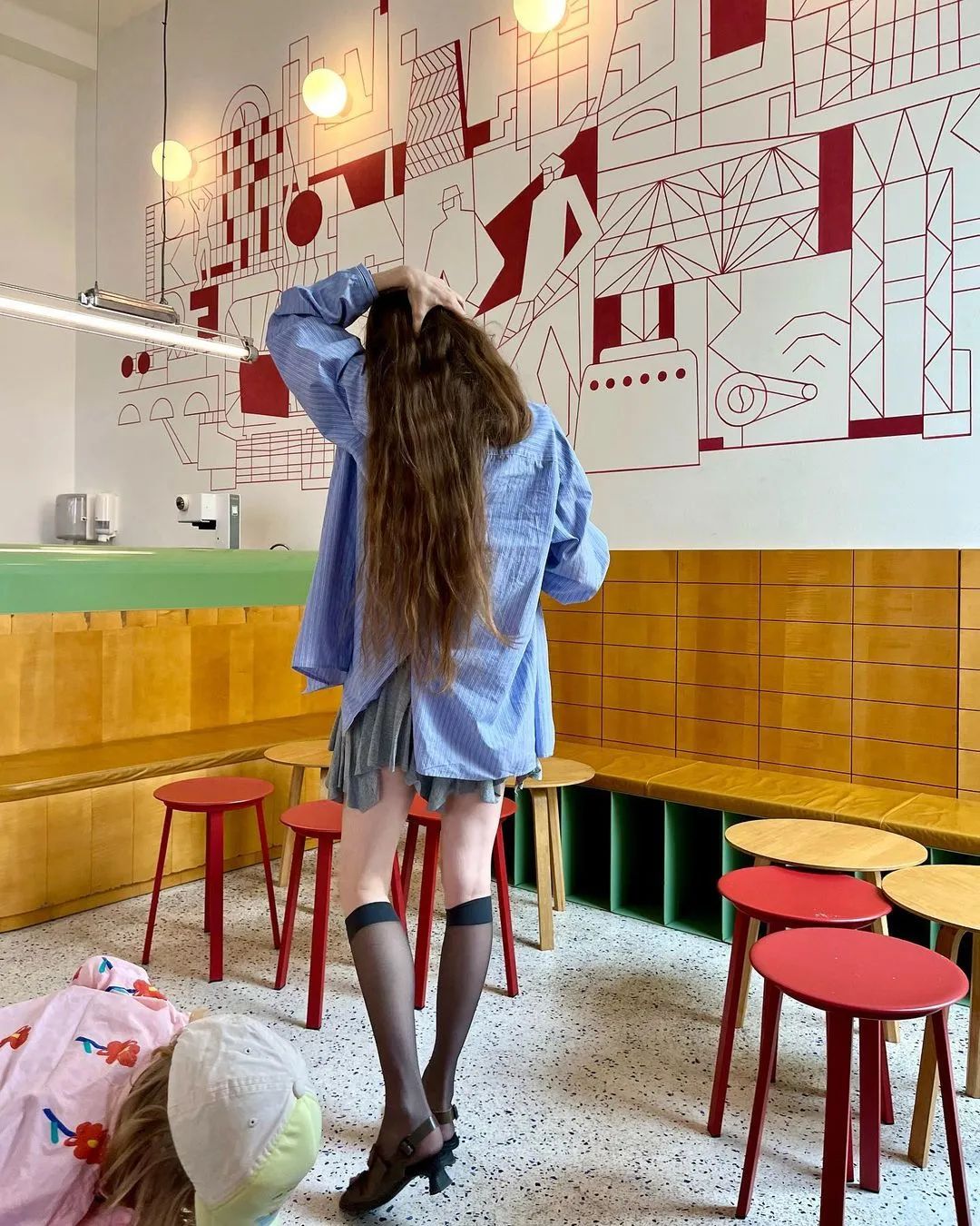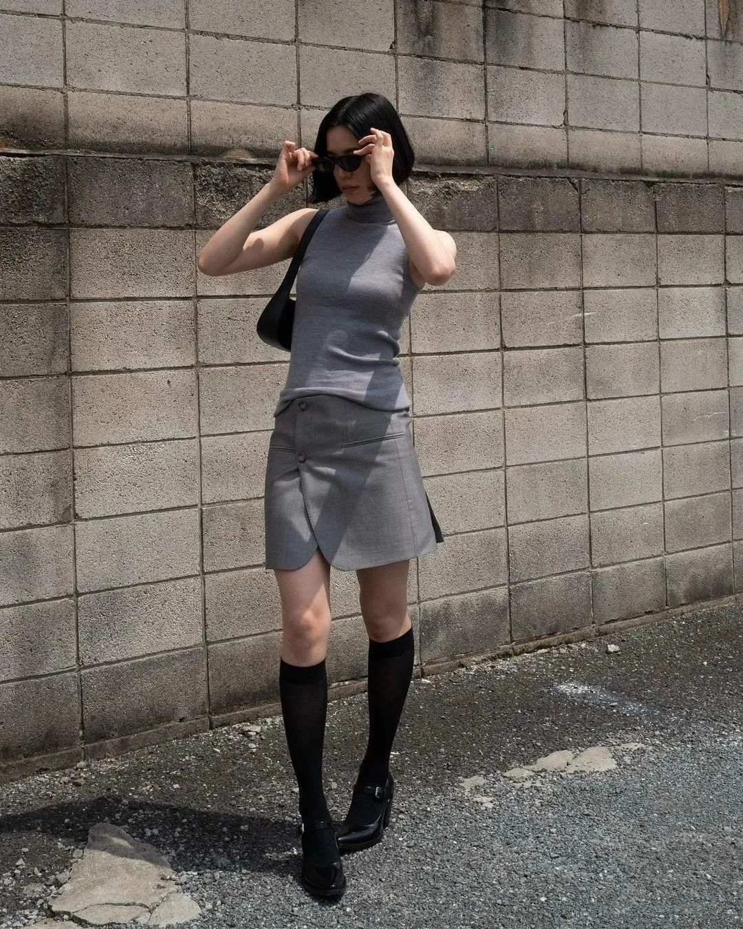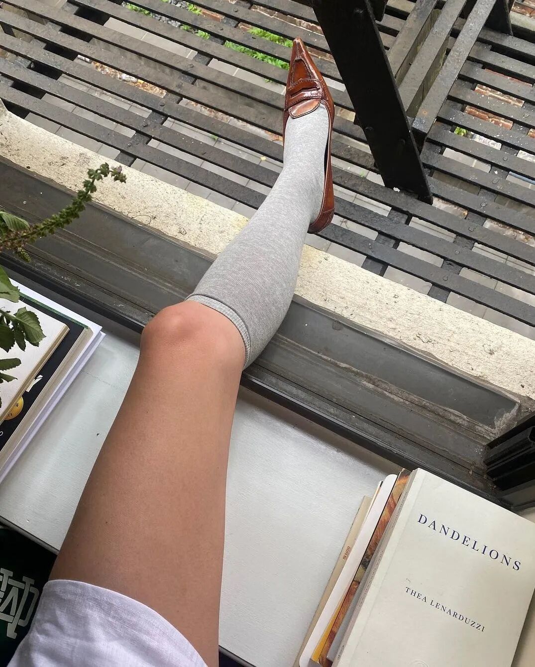时下流行的Y2K千禧风格同样可以依赖一双及膝小腿袜打造,像博主Diana Avel这身便是通过这款单品highlight,上下色系呼应,整个人看起来既慵懒又时髦。