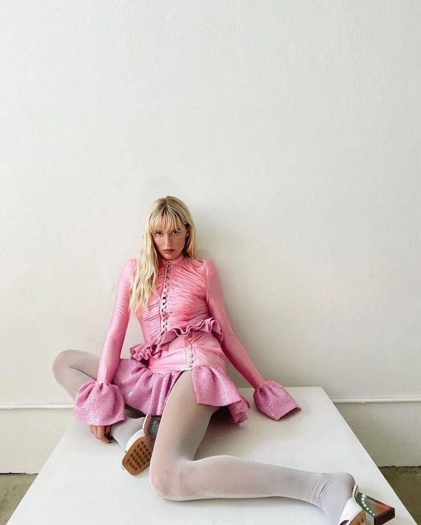 款式大胆浮夸,用色更是鲜明,Maison Soksi也因此受到了一众diva的喜爱,从Dua Lipa到Kendall Jenner,无一不是忠实追随者,韩国女团newjeans也曾用Maison Soksi的丝袜搭配打歌服。