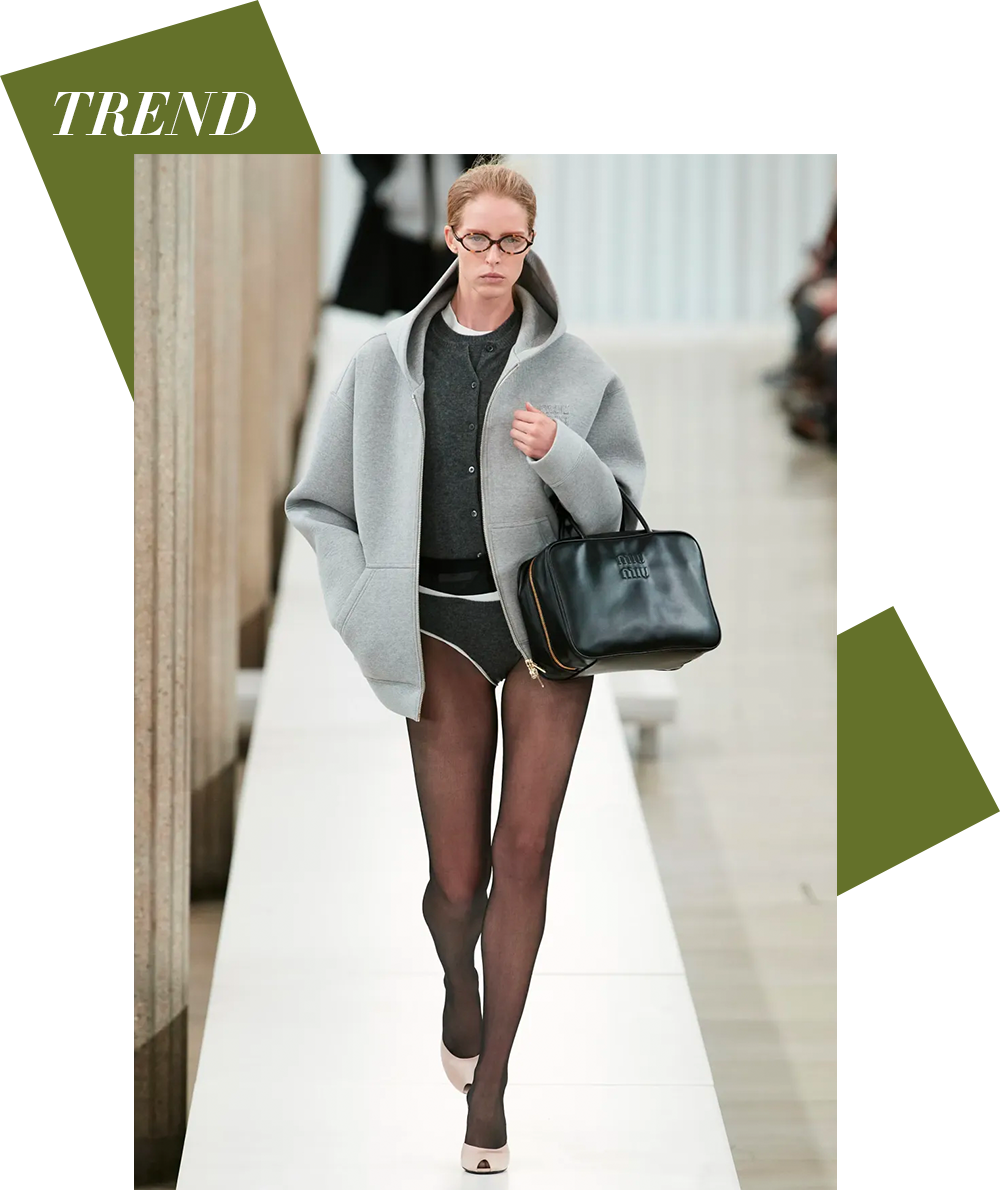 纵览本季,丝袜已经重新成为超越功能性的时尚配件,丝袜造型也已渗透各大品牌的秀场look,一如时髦尖子生Miu Miu带来的内衣外穿风潮,就是将轻薄亲肤的丝袜当作造型基底。