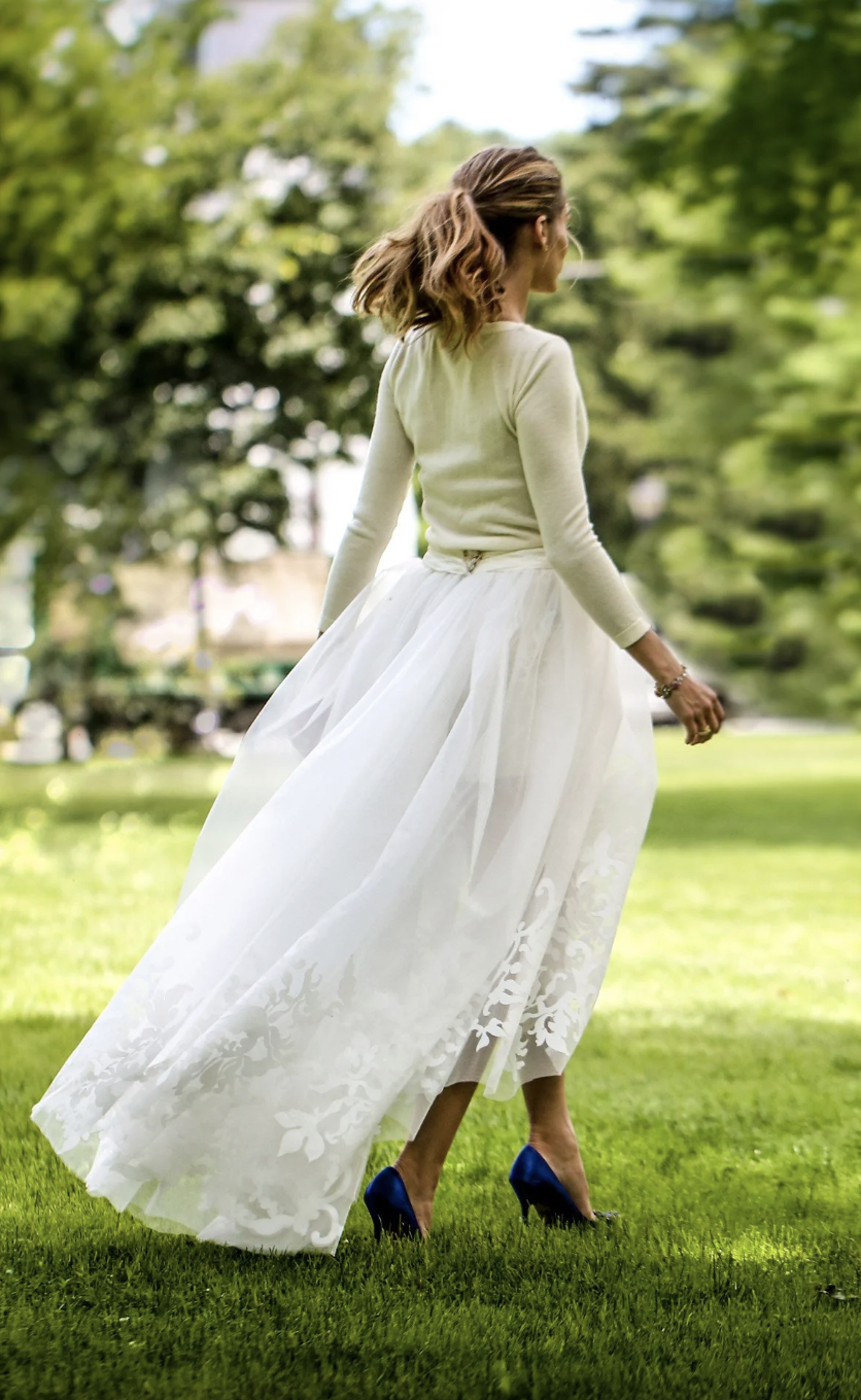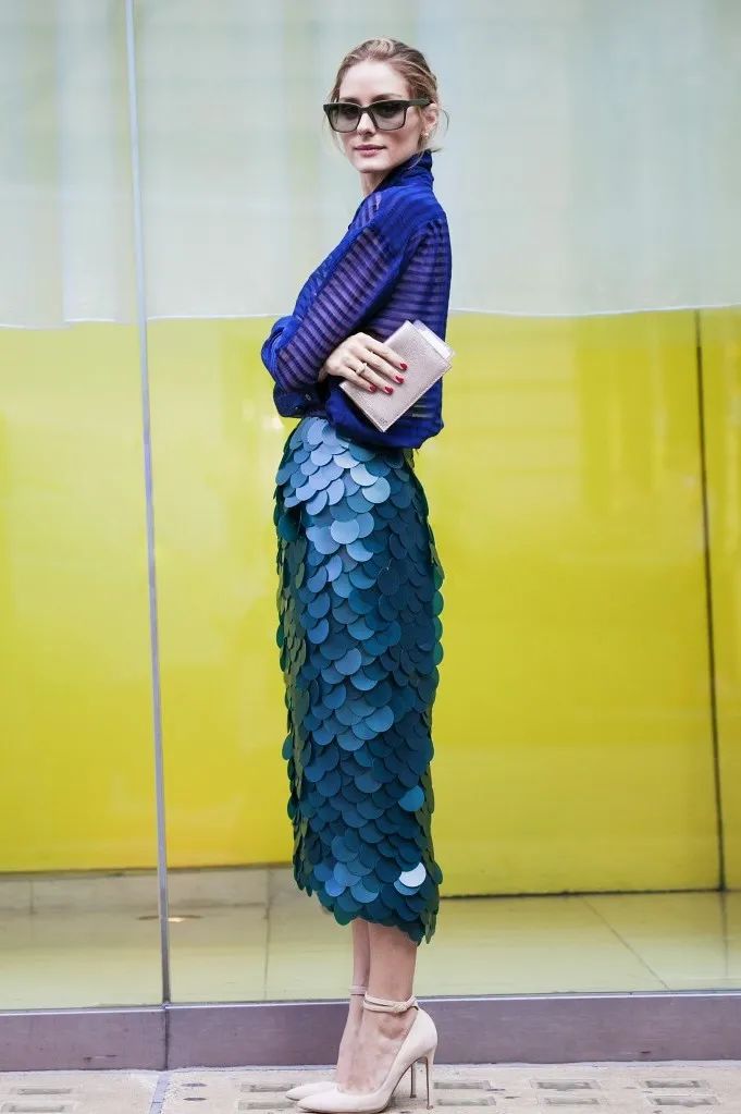 精致优雅的穿衣风格与她老钱的家庭背景,让她成为无数女孩梦想成为的目标。她对自身风格高度凝练的巅峰之照,便是她结婚时选择的那身“破格”婚礼造型。简约的白毛衣搭配白纱半裙,把造型重点放在了那双《欲望都市》Carrie同款的宝蓝色Manolo Blahnik上。正处在巅峰时期的Olivia用她人生最重要的场合,展现了It girl无可替代的品味。在“老钱风”和“静奢风”盛行的今天,这身简约的婚礼造型依然可以证明真正老钱们的品味。
