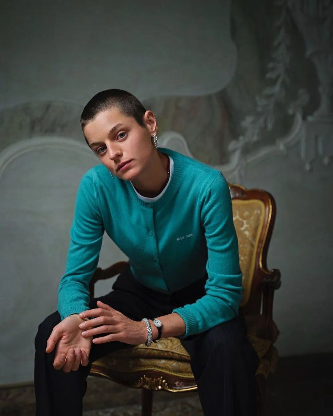 另一位被Miuccia Prada钦点的缪斯——Emma Corrin,和Maya有着相似的气质,但她对于时尚的展现更为大胆。将自己天马行空的思考融入时尚表达中,正是因为内外相符的气质,才让她颇受时尚圈的喜爱。