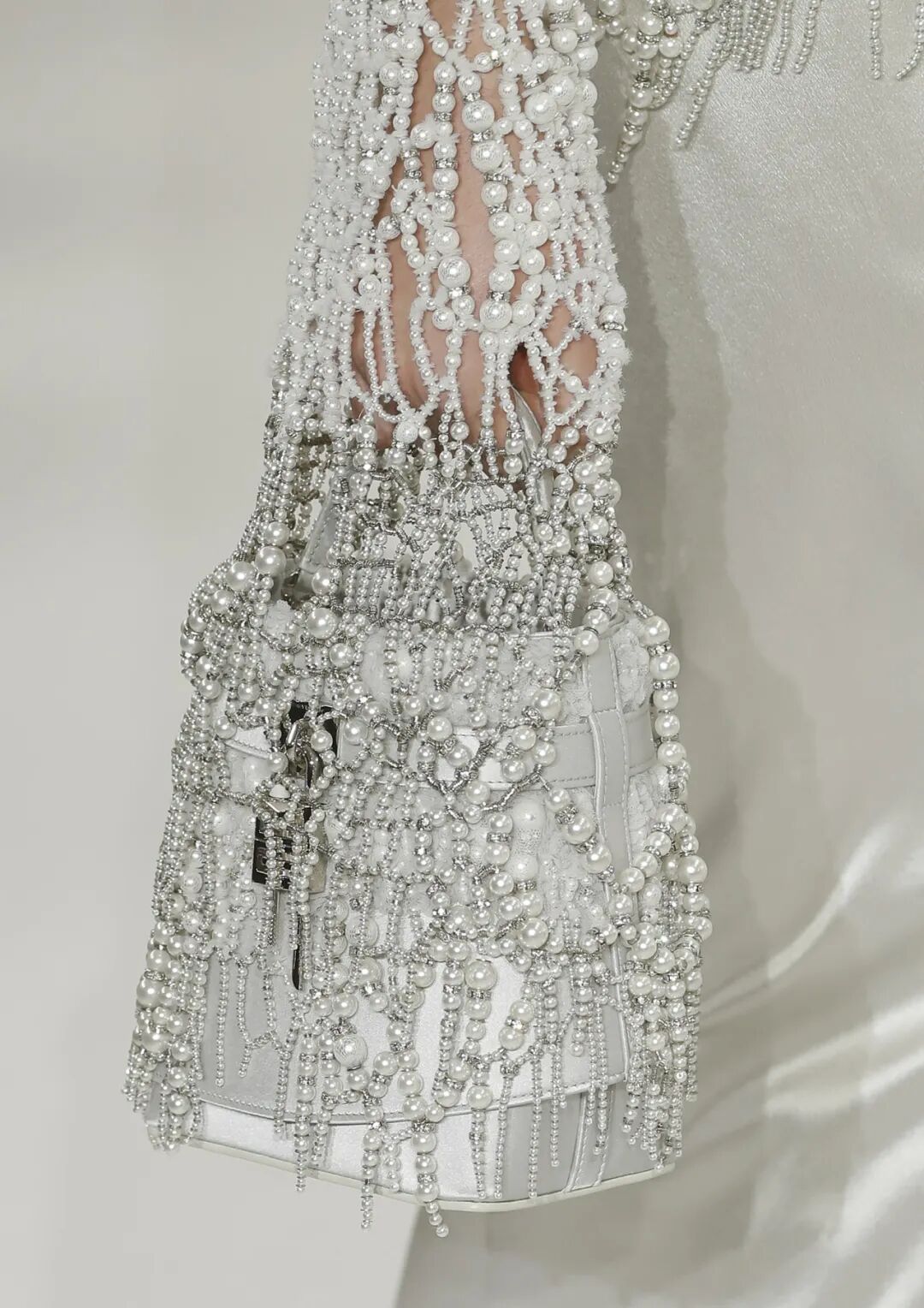 一些大牌很喜欢在包包上镶嵌珍珠,每一颗珍珠都经过精心挑选和搭配,使得手袋更显精致与考究。