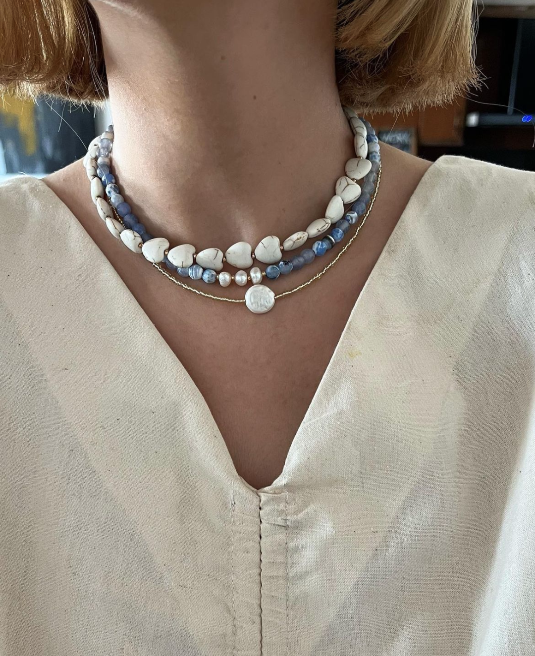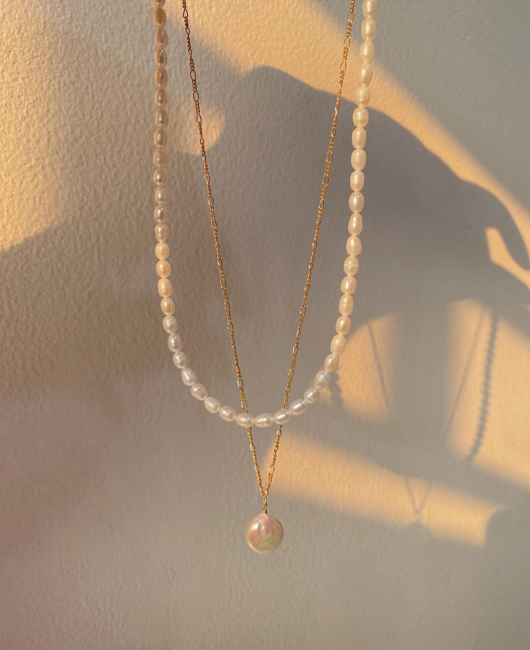 选择长度不同的珍珠项链,或者搭配其他不同材质的链条,打破传统的单条款式,展现层次感。