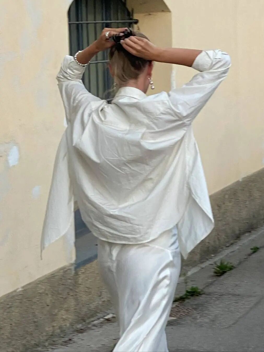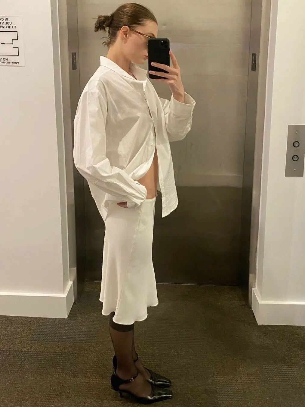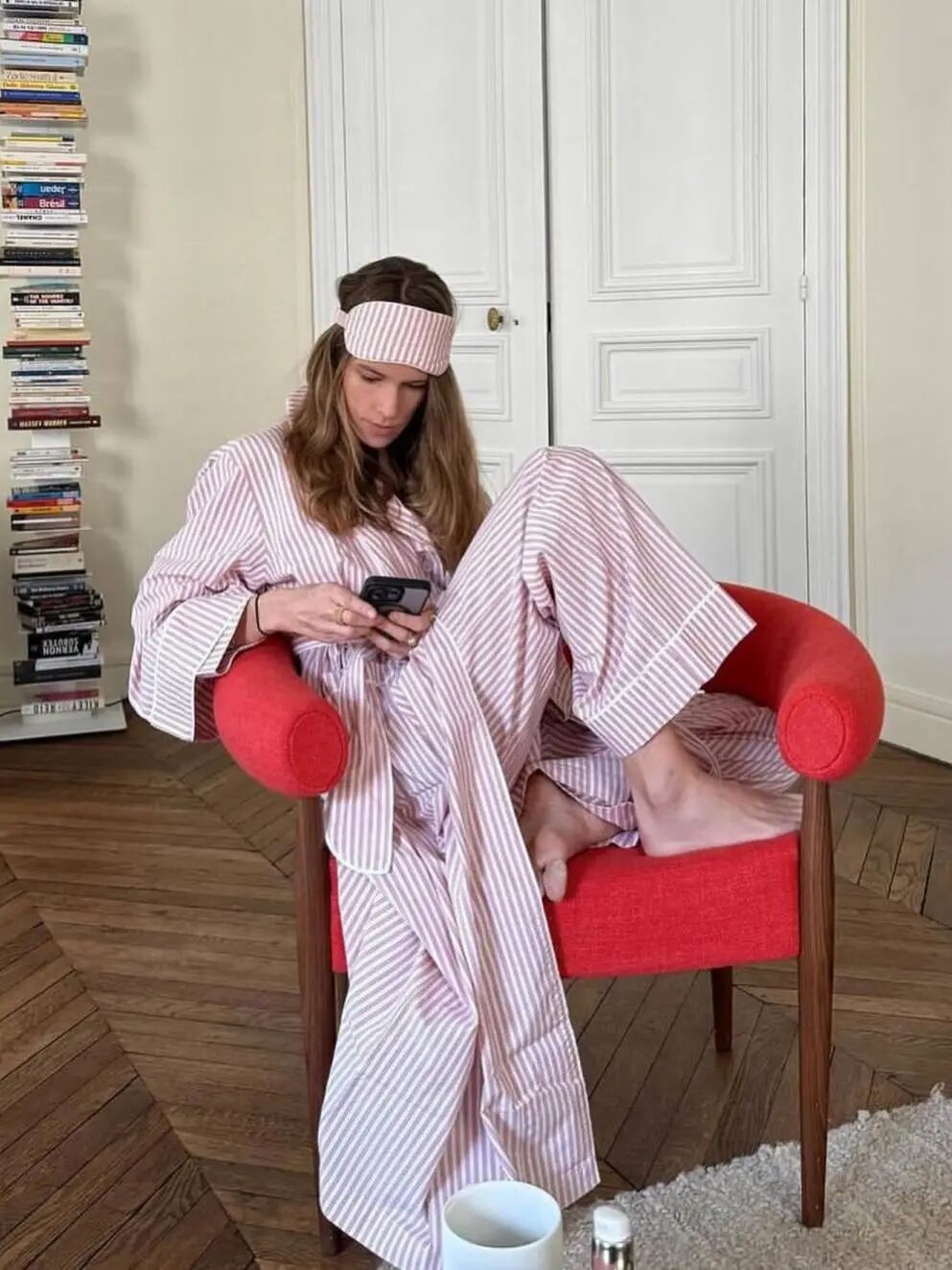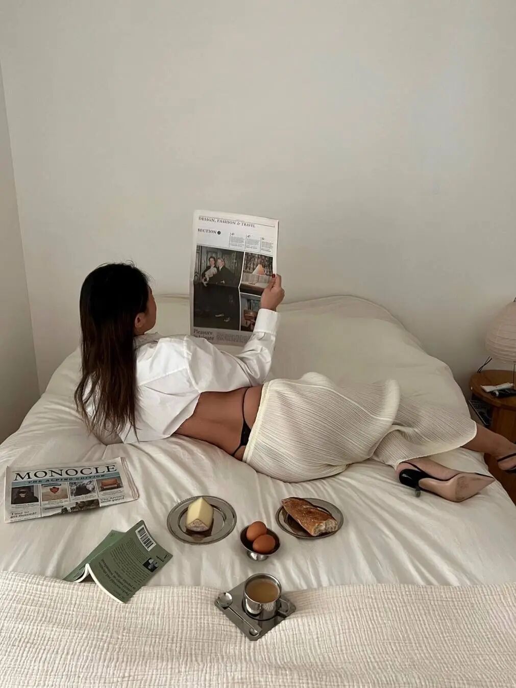 最近许多流行的生活美学引导者,都开始在社交媒体上推荐一种睡到自然醒并不疾不徐的起床模式,并将其称为「Morning Slow」。用愉悦的清晨开启幸福的一天,不仅正在成为当代女性所追求的生活方式,还衍生出了一种时尚穿搭风格。这种松弛、慵懒的风格如今在欧美已经取代了Athflow、Athleisure 成为大家在追的最新流行趋势。而对打工人来说,慵懒且时髦、还能让人多睡10分钟的Morning Slow风正在办公区蔓延......学生时代有多抗拒“早八”,如今就有多痛恨上班,然而发生变化的是,仿佛被工作吸走了精气的年轻人们正在开始进行积极的自我反抗,试图通过各种方式将去“班味儿”化进行到底。其表现不仅在于周末前往漂亮的Bistro吃一顿值得po上朋友圈的brunch,还在于在休息日彻底隔绝与工作有关的一切,只是惬意地宅在家,看会儿书、做点家务,就足够令人满足。因此,Morning Slow也就成为了都市女性们去除“班味儿”的方式之一,比如在休息日睡到自然醒,随便抓一件舒适的纯棉衬衫,或是一件已经与身体完全磨合充分的针织衫,简单拉伸后冲一杯咖啡,吃顿久违的homemade早餐,打开喜欢的音乐或播客,无所事事地度过一个早上。更自律者甚至会在珍贵的工作日早起,只为享受工作前的宁静清晨,吃完早餐并健身后,给一天充满电,活力满满地出门。这样的愉悦还可以类比于:工作日逛公园、在Monday喝橘子汽水和你一起浪漫约会……伴随生产力的升级,都市女性的生活方式随之改变,女孩们自愿“浪费时间”度过一个慵懒的清晨,意味着当代女性消费心理和社会身份的升级转变。古时欧洲古铜色的皮肤代表阶层,闲暇代表优越,如今亦是,她们从一味追求快速、精致,转而向内,更加关注自我,情绪安全感来源于自我能量的生产与转化。而将视角放置于时装语境,Morning Slow亦展现了当代女性们对于都市生活更为张弛有度节奏的追求与向往。然而,对比同样逻辑的上班“垃圾穿搭”,尽管二者都是主打随意,与前者出门前随手抓一件衣服的邋遢感相比,Morning Slow则用有质感的基本款单品塑造松弛的氛围感。春天是属于衬衫的季节,条纹的、白色的、彩色的大可以大胆上身,受过浆洗的纯棉衬衫自带筋骨,免去了熨烫的烦恼,天然的廓形为穿着者留出更多空白,身体活动也不再受限,当行动范围被扩大,内心的自由意识也被解放了出来,自带一股洒脱劲儿。似乎衬衫+拖鞋的搭配更能展示出不经意间的时髦与慵懒,给平时穿惯了高跟鞋的脚也做个放松,无论是在家,还是搭配一双舒适的棉袜出门,当穿着场景的限制变得模糊,生活的气息却开始变得清晰起来。半裙的魅力在于,可以完美消化各种风格。你可以早上出门和通勤路上感觉自己如同春日轻盈的花朵飘逸,套上一件西装,你也可以在会议室用专业的职业形象侃侃而谈。乍暖还寒时节,北方的朋友似乎还无法抛弃外套,那么一件长大衣则能够打造一套赏心悦目的Morning Slow outfit,无论内搭如何,当套上那件羊毛材质的及踝大衣,只需要配一双亮色小皮鞋,或一副墨镜,被包裹的安全感便油然而生了。恰到好处的“懒散”是Morning Slow的精髓,过多,过分精致,过少,略显邋遢,而针织衫由于具有亲肤、温柔的特性,非常适合在这个季节交替的时节穿着,稍带廓形的款式恰好实现了适度的慵懒,自带柔和滤镜,同色套装省时省力,撞色搭配也更有春日氛围。Morning Slow,正如其名,清晨慵懒风格在于教你如何“慢下来”,减缓脚步,做个减法,展现真实的自我。正如同深夜不愿入眠的上班族,仅仅是为了抓住寂静夜晚里只属于自己的独处时光,而在追求健康、积极的生活方式下,清晨亦是与自我对话的好时机。