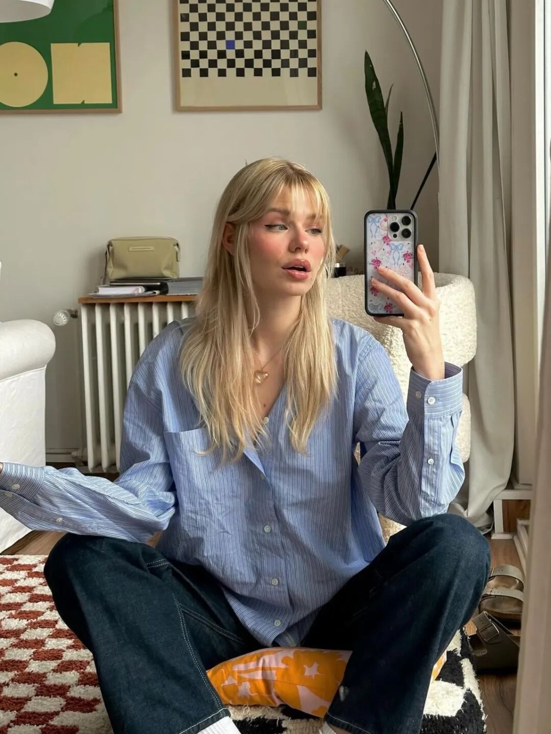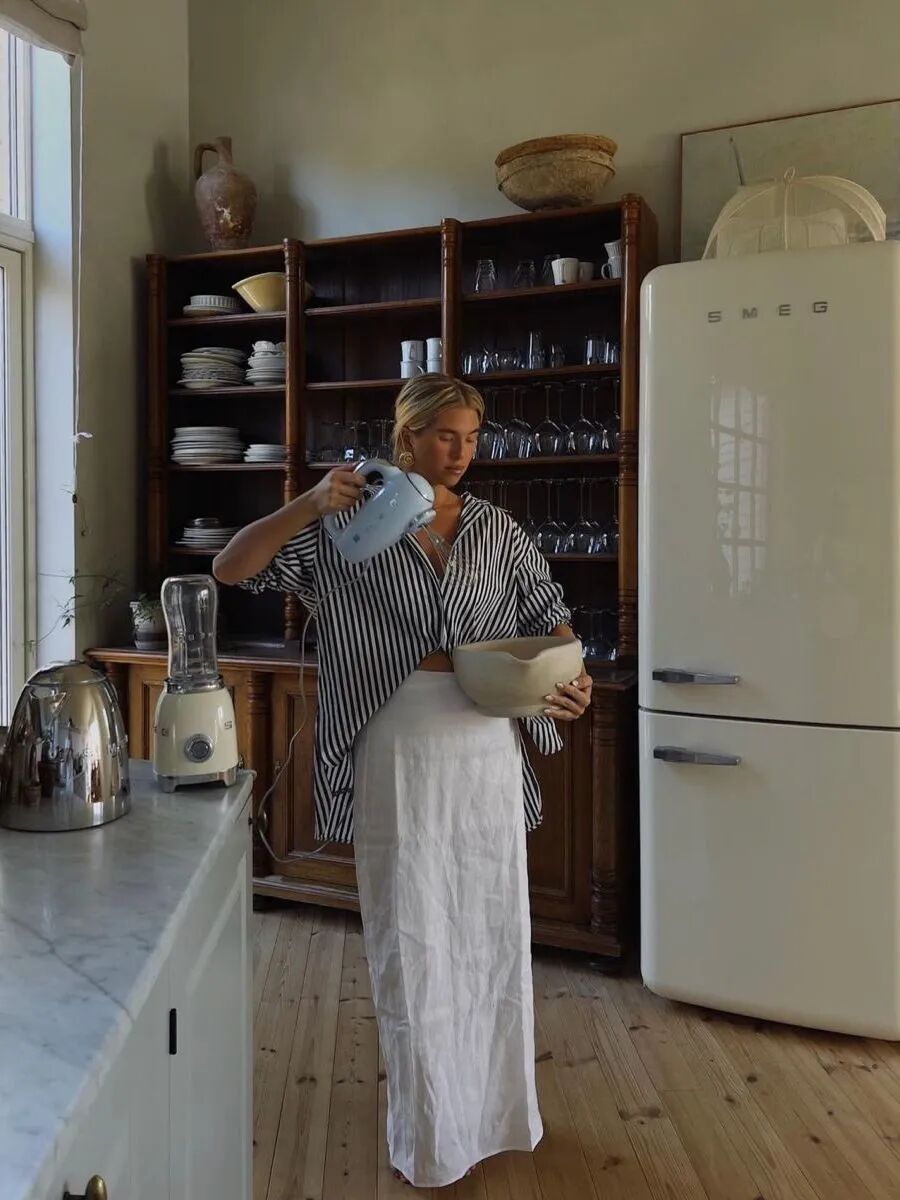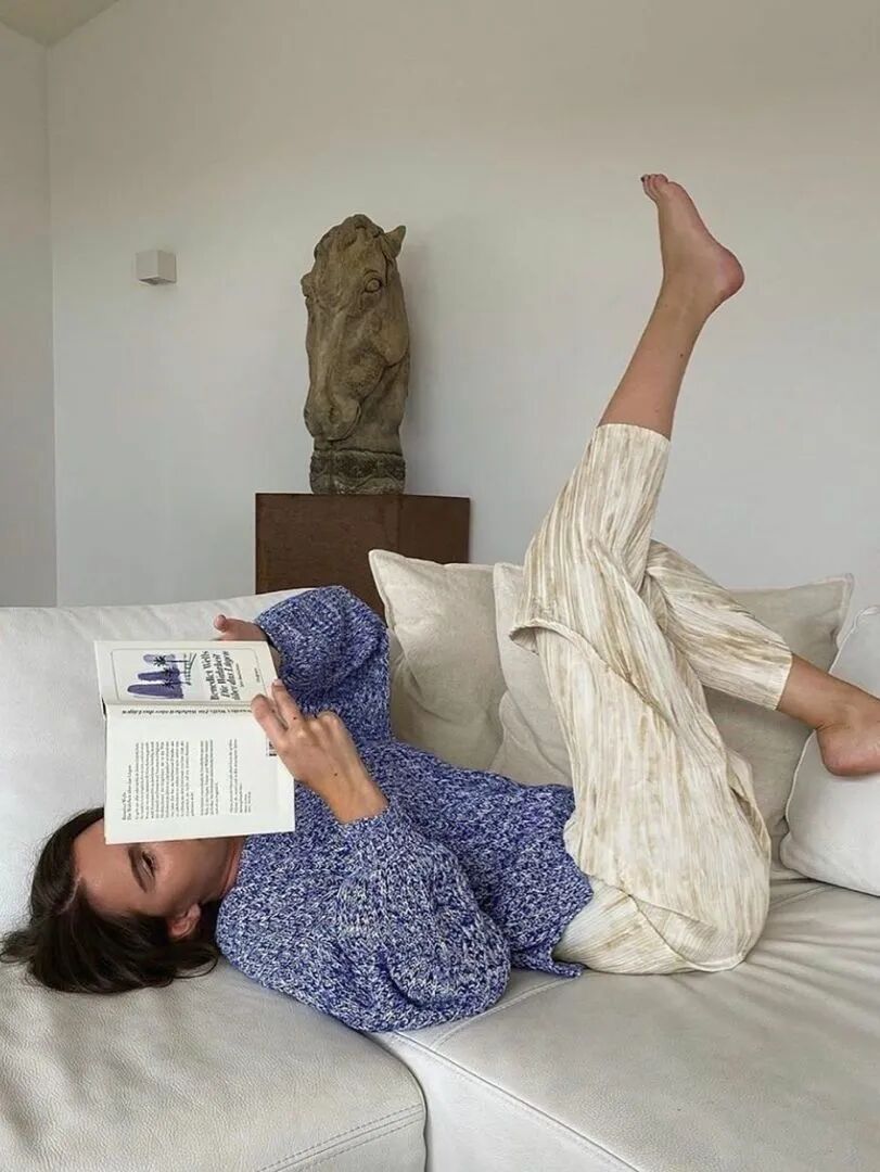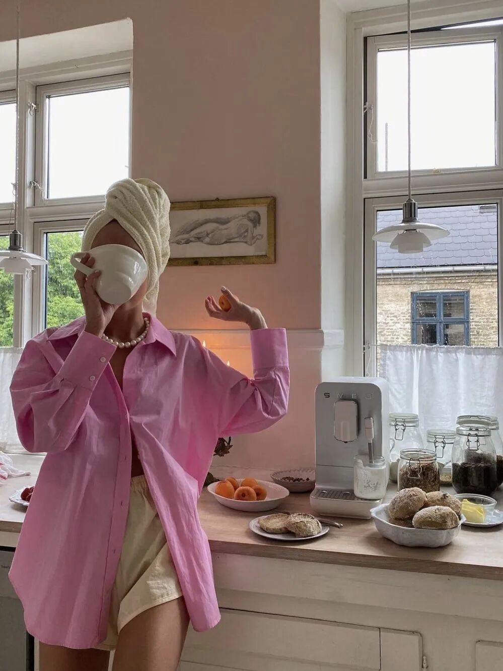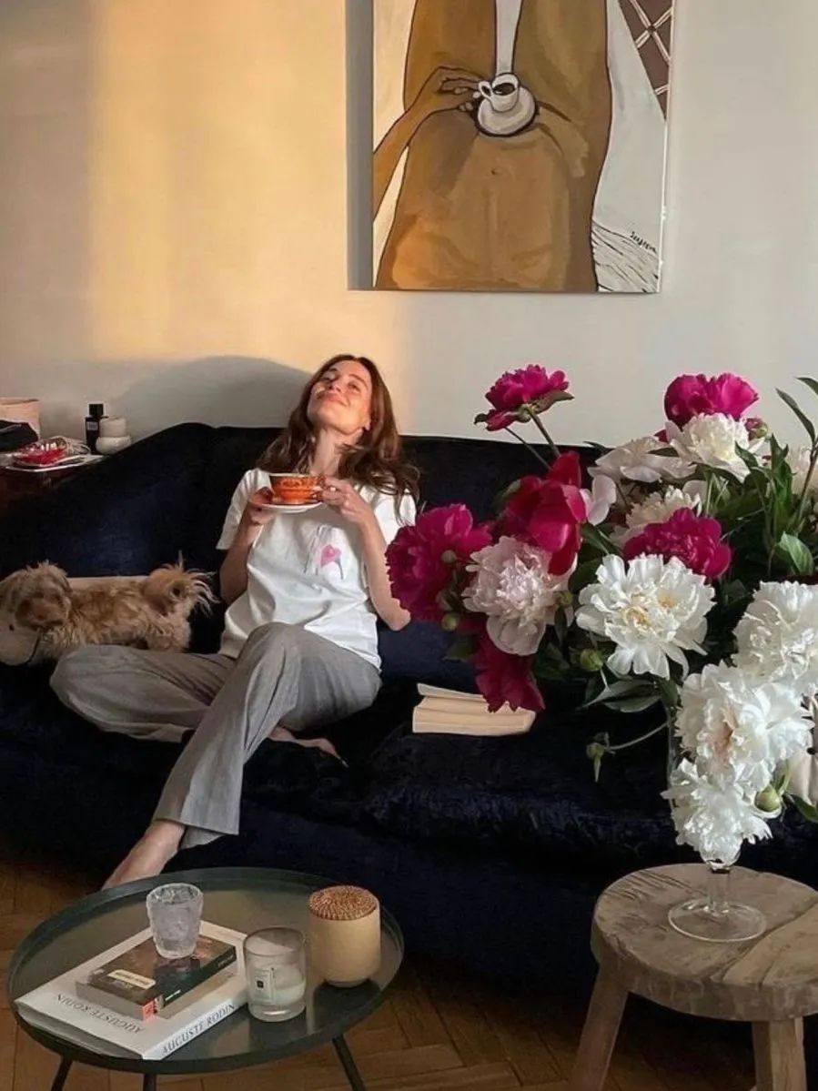 最近许多流行的生活美学引导者,都开始在社交媒体上推荐一种睡到自然醒并不疾不徐的起床模式,并将其称为「Morning Slow」。用愉悦的清晨开启幸福的一天,不仅正在成为当代女性所追求的生活方式,还衍生出了一种时尚穿搭风格。这种松弛、慵懒的风格如今在欧美已经取代了Athflow、Athleisure 成为大家在追的最新流行趋势。而对打工人来说,慵懒且时髦、还能让人多睡10分钟的Morning Slow风正在办公区蔓延......学生时代有多抗拒“早八”,如今就有多痛恨上班,然而发生变化的是,仿佛被工作吸走了精气的年轻人们正在开始进行积极的自我反抗,试图通过各种方式将去“班味儿”化进行到底。其表现不仅在于周末前往漂亮的Bistro吃一顿值得po上朋友圈的brunch,还在于在休息日彻底隔绝与工作有关的一切,只是惬意地宅在家,看会儿书、做点家务,就足够令人满足。因此,Morning Slow也就成为了都市女性们去除“班味儿”的方式之一,比如在休息日睡到自然醒,随便抓一件舒适的纯棉衬衫,或是一件已经与身体完全磨合充分的针织衫,简单拉伸后冲一杯咖啡,吃顿久违的homemade早餐,打开喜欢的音乐或播客,无所事事地度过一个早上。更自律者甚至会在珍贵的工作日早起,只为享受工作前的宁静清晨,吃完早餐并健身后,给一天充满电,活力满满地出门。这样的愉悦还可以类比于:工作日逛公园、在Monday喝橘子汽水和你一起浪漫约会……伴随生产力的升级,都市女性的生活方式随之改变,女孩们自愿“浪费时间”度过一个慵懒的清晨,意味着当代女性消费心理和社会身份的升级转变。古时欧洲古铜色的皮肤代表阶层,闲暇代表优越,如今亦是,她们从一味追求快速、精致,转而向内,更加关注自我,情绪安全感来源于自我能量的生产与转化。而将视角放置于时装语境,Morning Slow亦展现了当代女性们对于都市生活更为张弛有度节奏的追求与向往。然而,对比同样逻辑的上班“垃圾穿搭”,尽管二者都是主打随意,与前者出门前随手抓一件衣服的邋遢感相比,Morning Slow则用有质感的基本款单品塑造松弛的氛围感。春天是属于衬衫的季节,条纹的、白色的、彩色的大可以大胆上身,受过浆洗的纯棉衬衫自带筋骨,免去了熨烫的烦恼,天然的廓形为穿着者留出更多空白,身体活动也不再受限,当行动范围被扩大,内心的自由意识也被解放了出来,自带一股洒脱劲儿。似乎衬衫+拖鞋的搭配更能展示出不经意间的时髦与慵懒,给平时穿惯了高跟鞋的脚也做个放松,无论是在家,还是搭配一双舒适的棉袜出门,当穿着场景的限制变得模糊,生活的气息却开始变得清晰起来。半裙的魅力在于,可以完美消化各种风格。你可以早上出门和通勤路上感觉自己如同春日轻盈的花朵飘逸,套上一件西装,你也可以在会议室用专业的职业形象侃侃而谈。乍暖还寒时节,北方的朋友似乎还无法抛弃外套,那么一件长大衣则能够打造一套赏心悦目的Morning Slow outfit,无论内搭如何,当套上那件羊毛材质的及踝大衣,只需要配一双亮色小皮鞋,或一副墨镜,被包裹的安全感便油然而生了。恰到好处的“懒散”是Morning Slow的精髓,过多,过分精致,过少,略显邋遢,而针织衫由于具有亲肤、温柔的特性,非常适合在这个季节交替的时节穿着,稍带廓形的款式恰好实现了适度的慵懒,自带柔和滤镜,同色套装省时省力,撞色搭配也更有春日氛围。Morning Slow,正如其名,清晨慵懒风格在于教你如何“慢下来”,减缓脚步,做个减法,展现真实的自我。正如同深夜不愿入眠的上班族,仅仅是为了抓住寂静夜晚里只属于自己的独处时光,而在追求健康、积极的生活方式下,清晨亦是与自我对话的好时机。