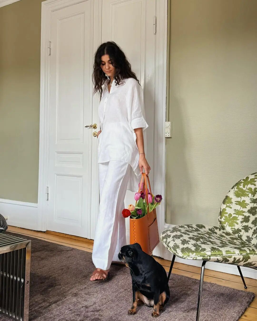 如何通过穿着体现这种自由?可以是全身同色,完全不必费心色彩的搭配,即使是成套的睡衣也可以将袖口挽起,或解开几颗领口的扣子,更富有细节感,将重点关注在自己,令平日精致穿搭中的“衣穿人”,时刻保持得体,转变为“人穿衣”。