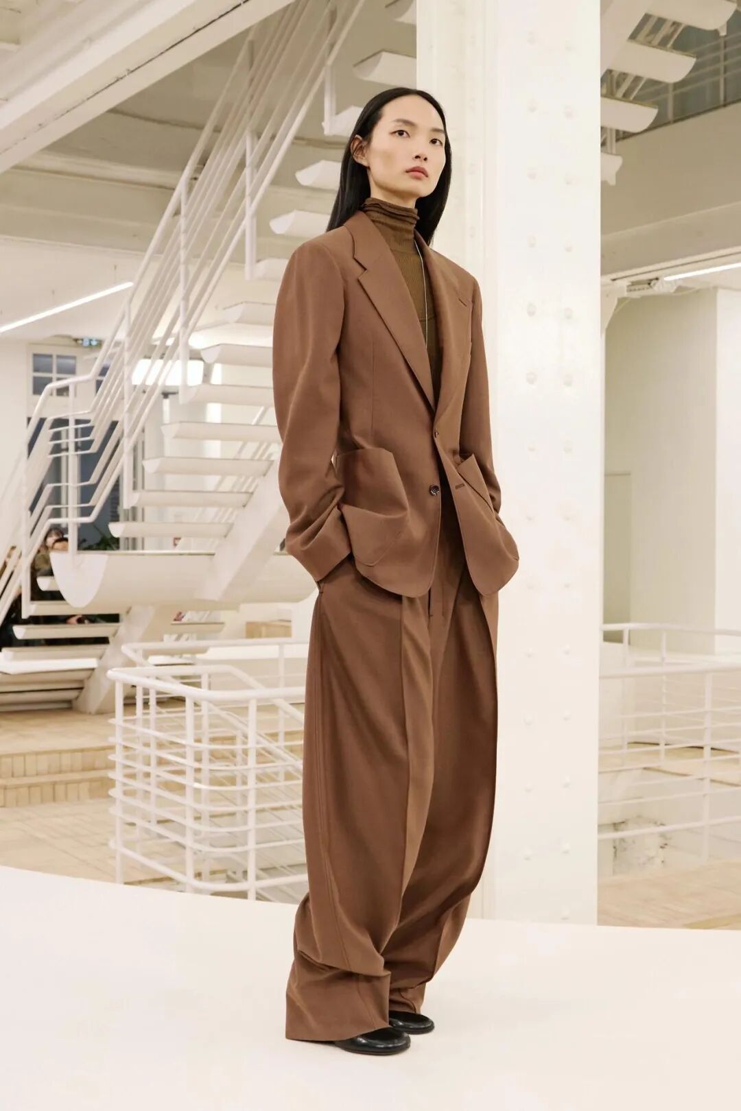 一直偏爱棕色、大地色的Lemaire,2024秋冬系列通过不同材质和纹理的搭配,让摩卡棕色系在其作品中呈现出了独特的艺术感和叙事性。