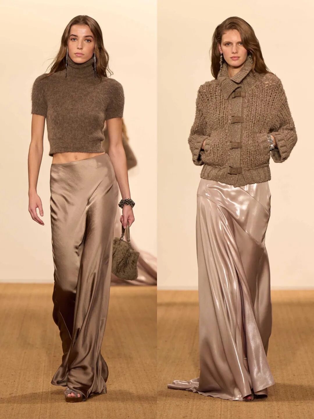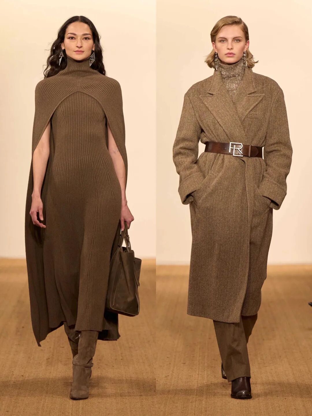 Ralph Lauren 2024秋冬系列延续品牌复古老钱的静奢基调,由浅入深的大地色系构筑整个系列的主色调。简约流畅的裁剪、细腻奢华的面料,用经典不费力的设计风格强调老牌贵族的低调奢华气场。