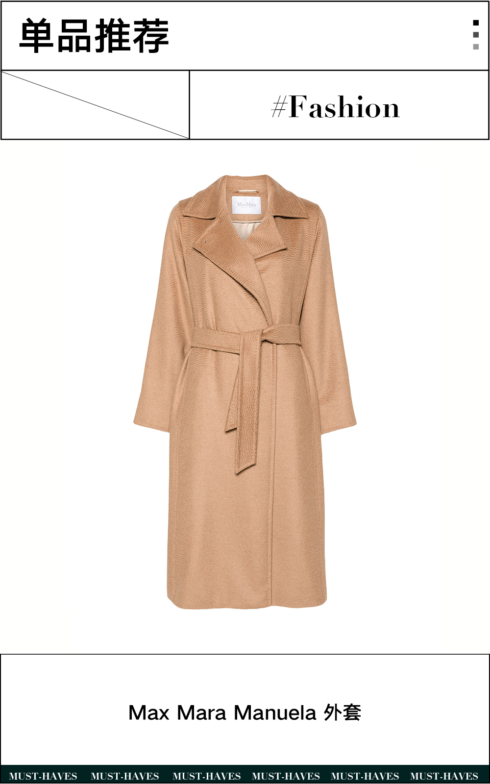 Max Mara这款外套以简洁的裹身设计搭配宽翻领和腰带为标志性特色,通过精湛剪裁修饰身材曲线,尽显女性的柔美与干练。骆驼绒柔软细腻且保暖性佳,羊毛坚韧耐穿且挺括有型,风格经典优雅又不失休闲随性。