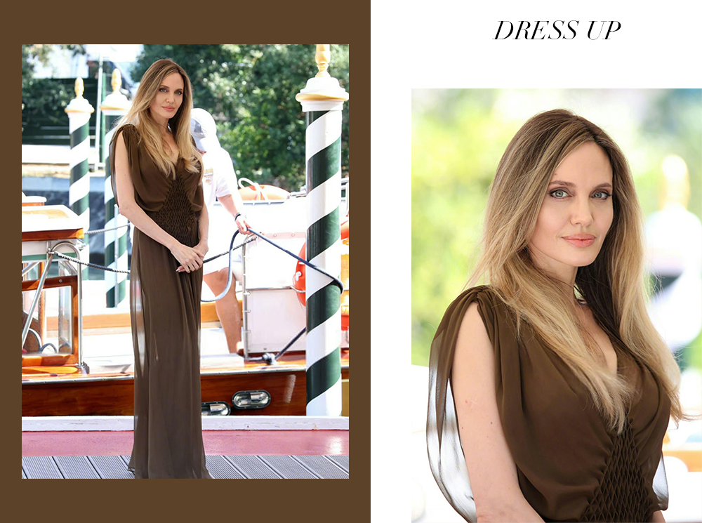 岁月从不败美人,安吉丽娜·朱莉一袭深V咖色薄纱长裙惊艳亮相威尼斯电影节,一如当年的曼妙身姿,性感而妩媚。