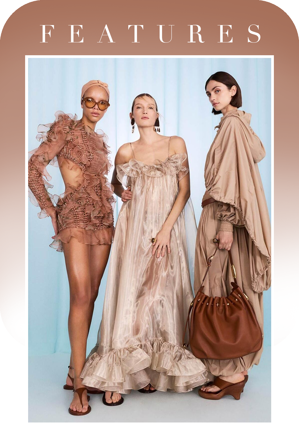 ZIMMERMANN 2025春季成衣用飘逸轻薄的面料演绎富有诗意的张力美感,以此展现冲浪者追求自由、无拘无束的精神,同时也让摩卡慕斯有了不同以往的轻盈表达。