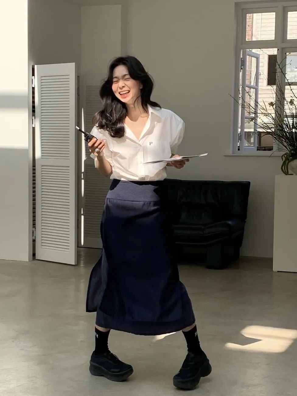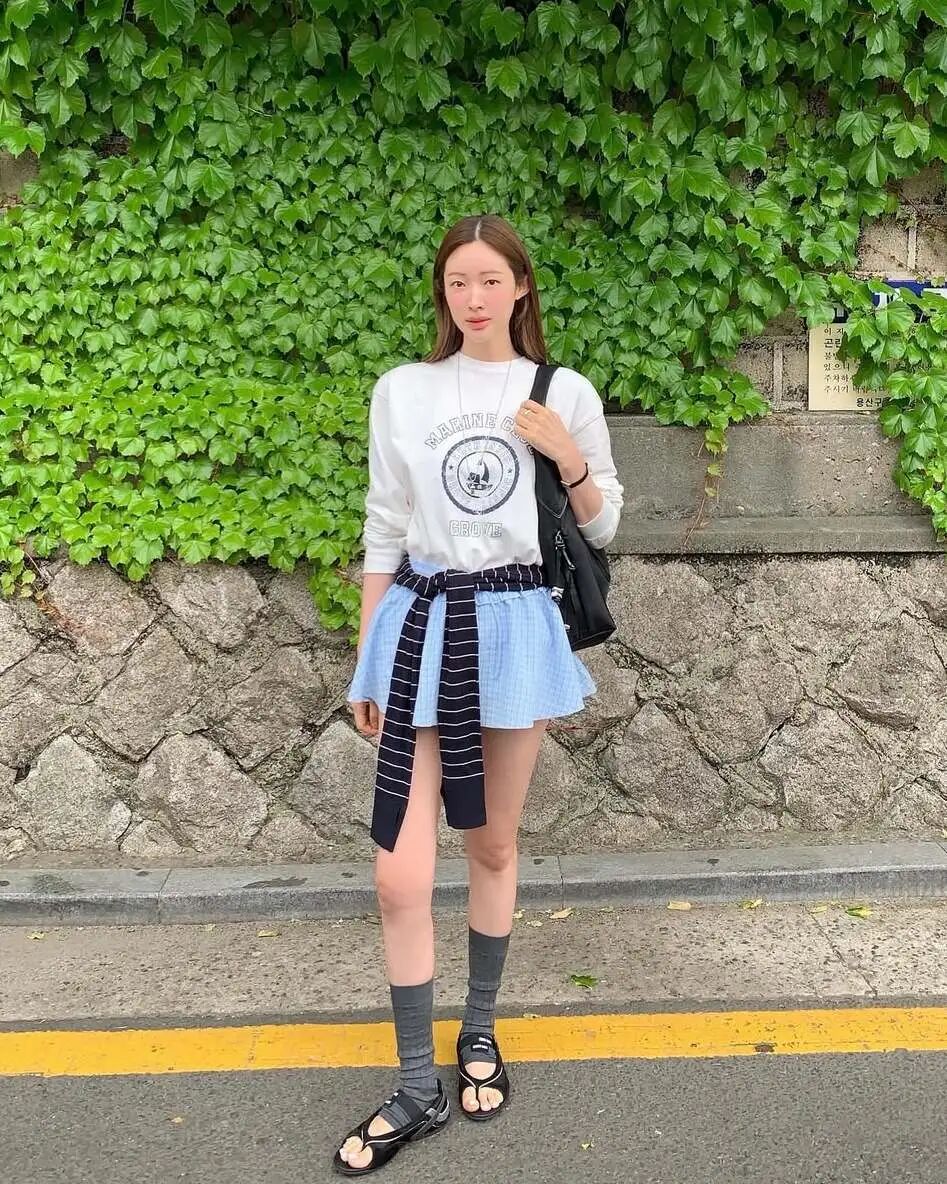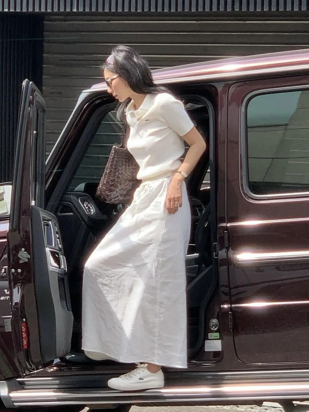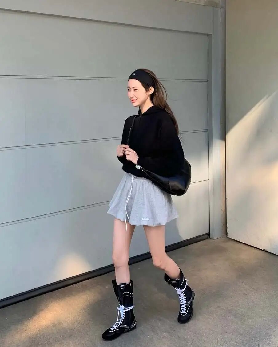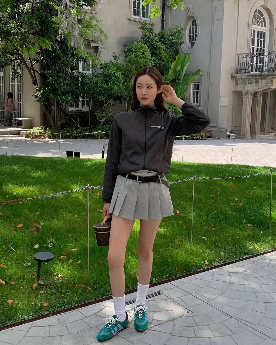 作为百褶裙的忠实爱好者,车静媛的日常穿搭更是少不了这款单品,不管是搭配T恤还是卫衣Polo衫,都能瞬间平衡学院风格与都市摩登感。