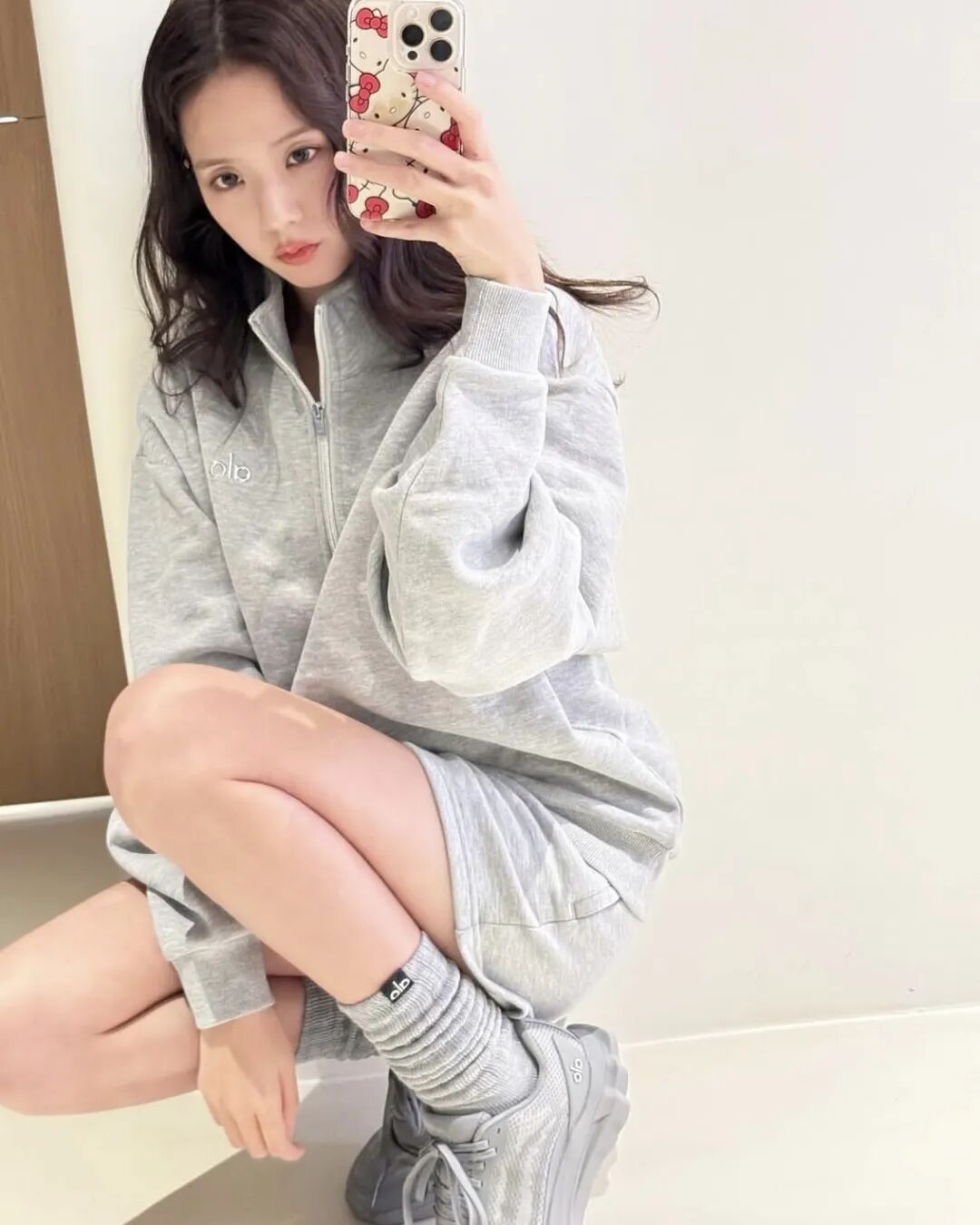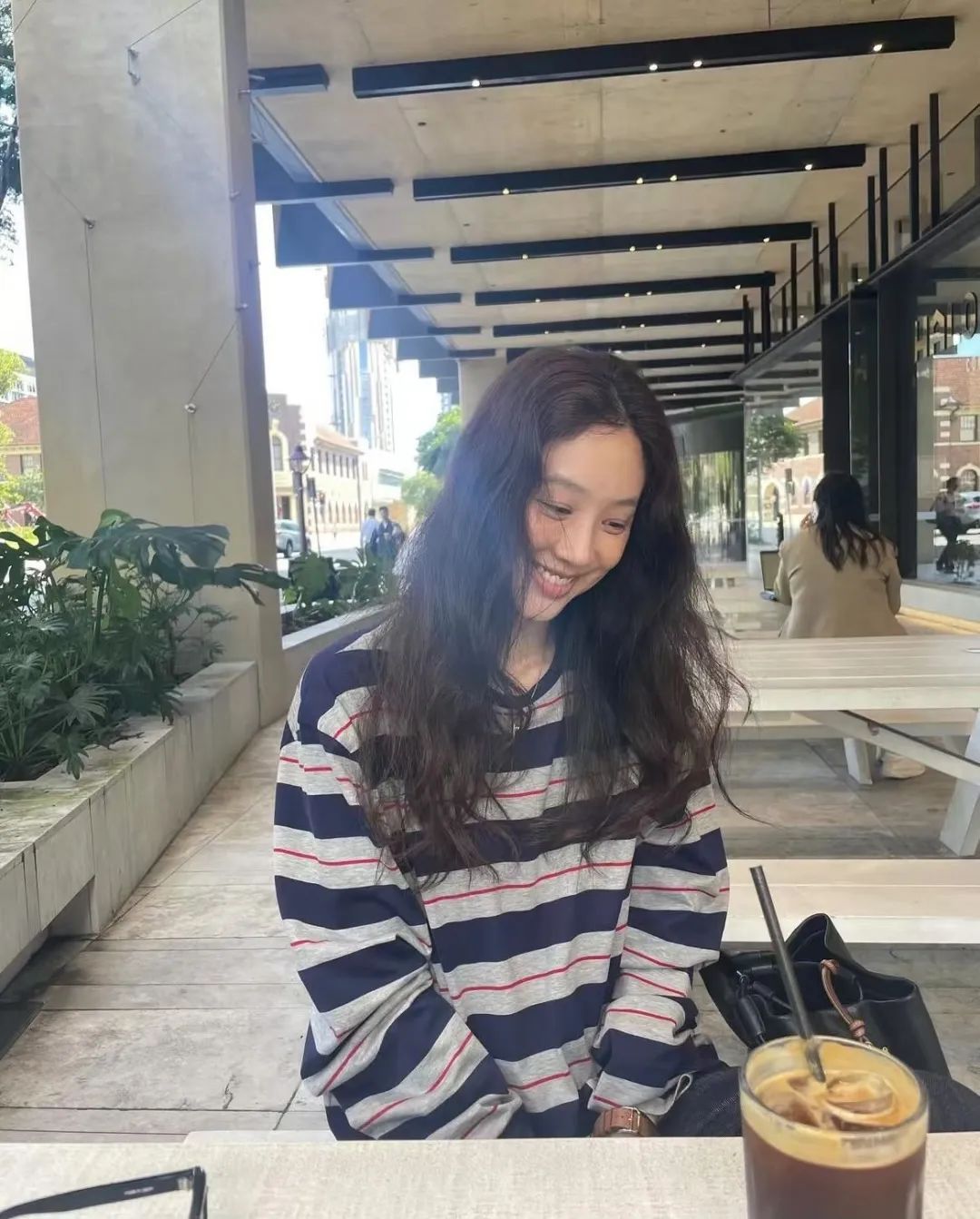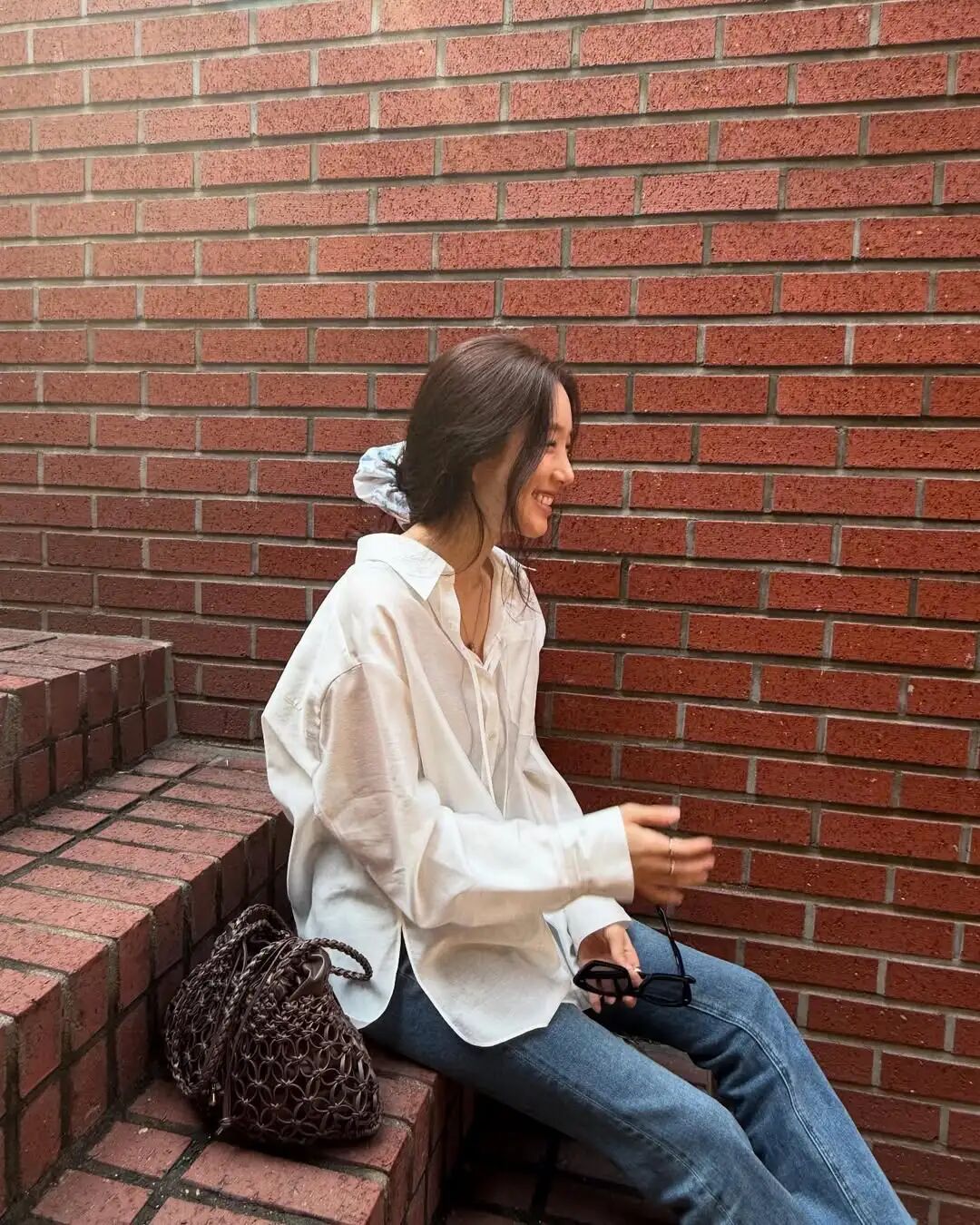 学院风格的宽松卫衣、棉质T恤、衬衫,几乎成了金智媛私服标配,这种松弛的状态,反而是用日常的基础款打造毫不费力的时髦感。