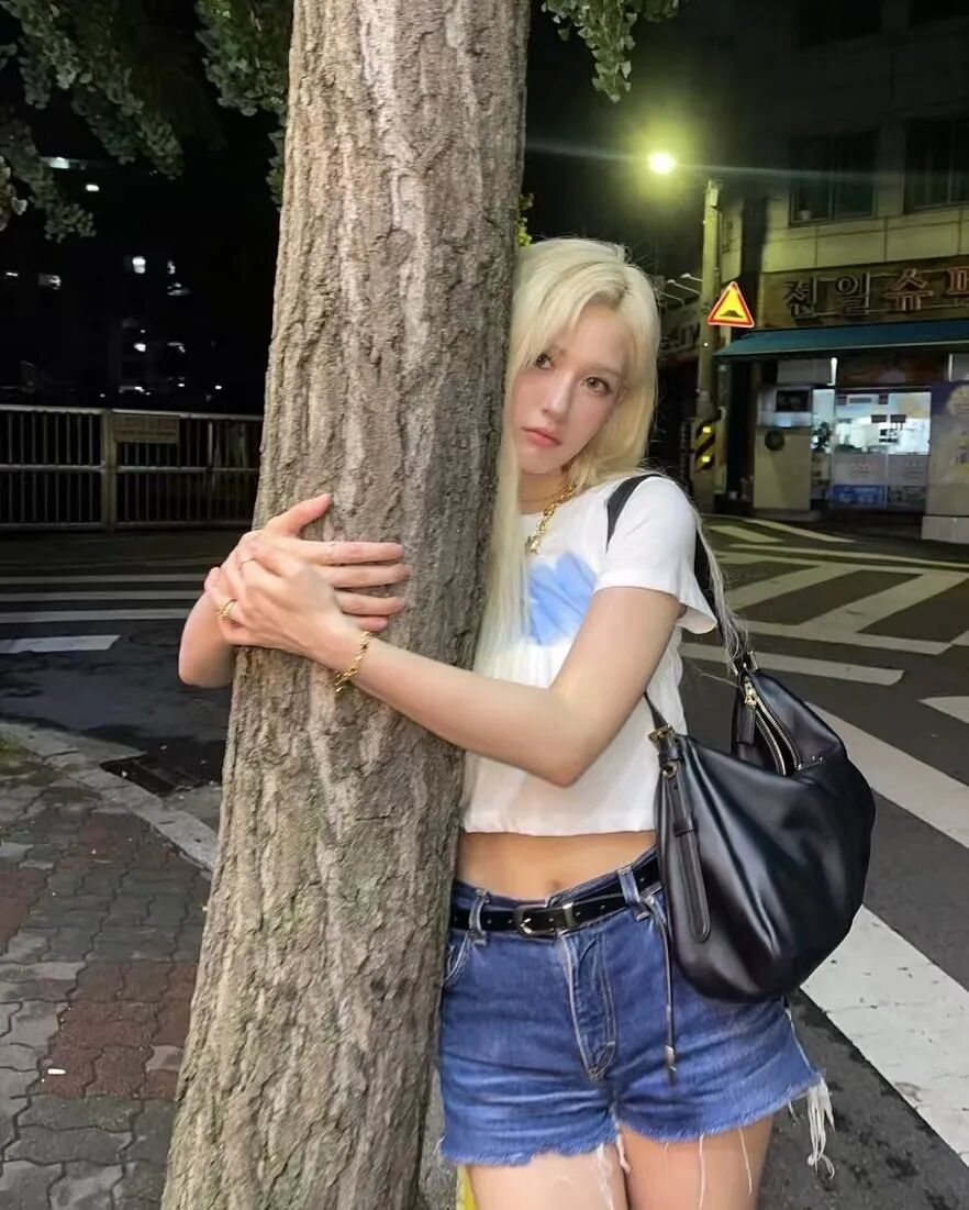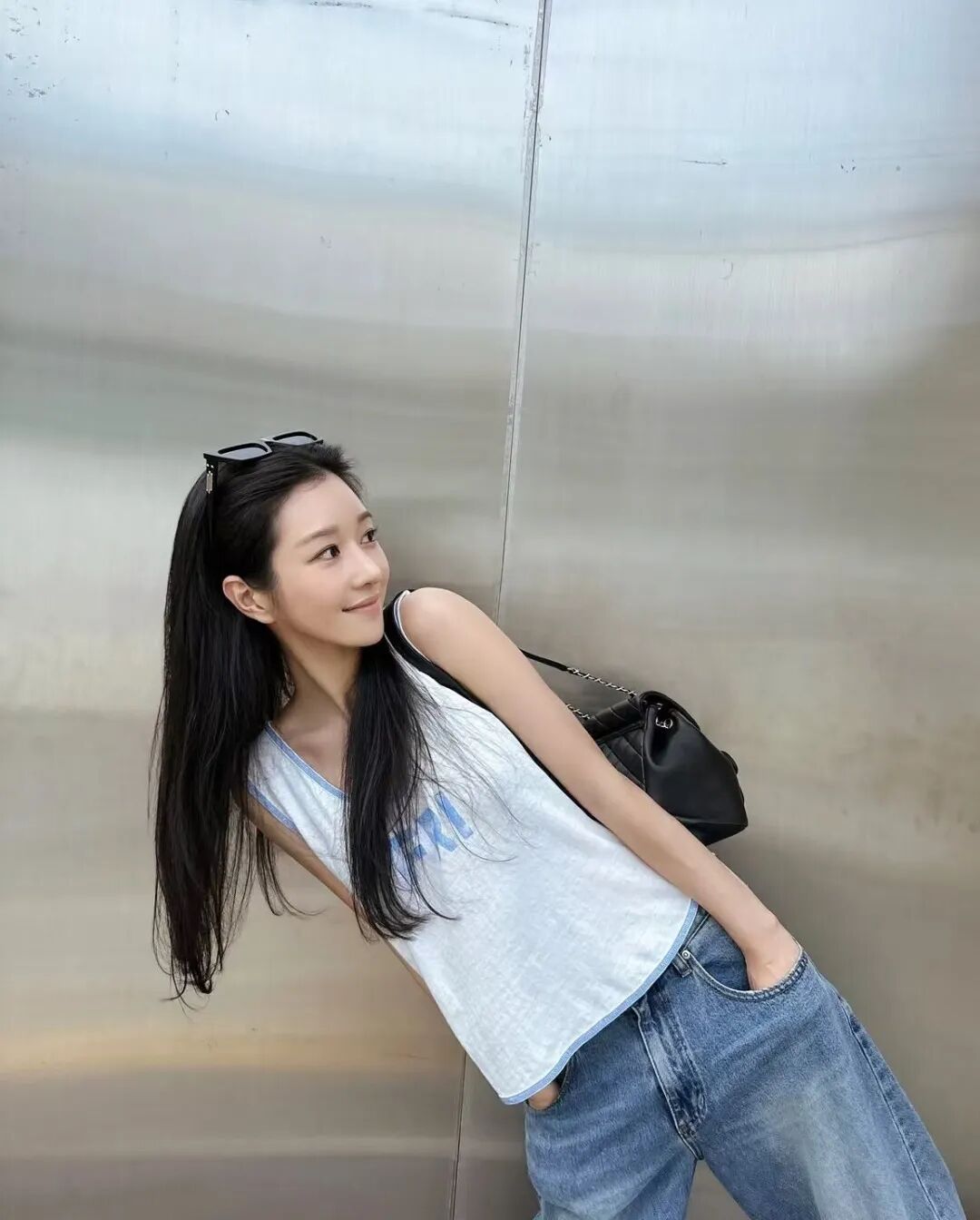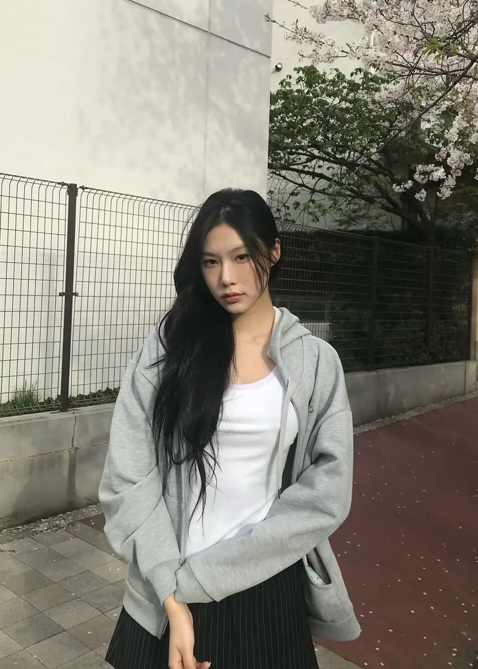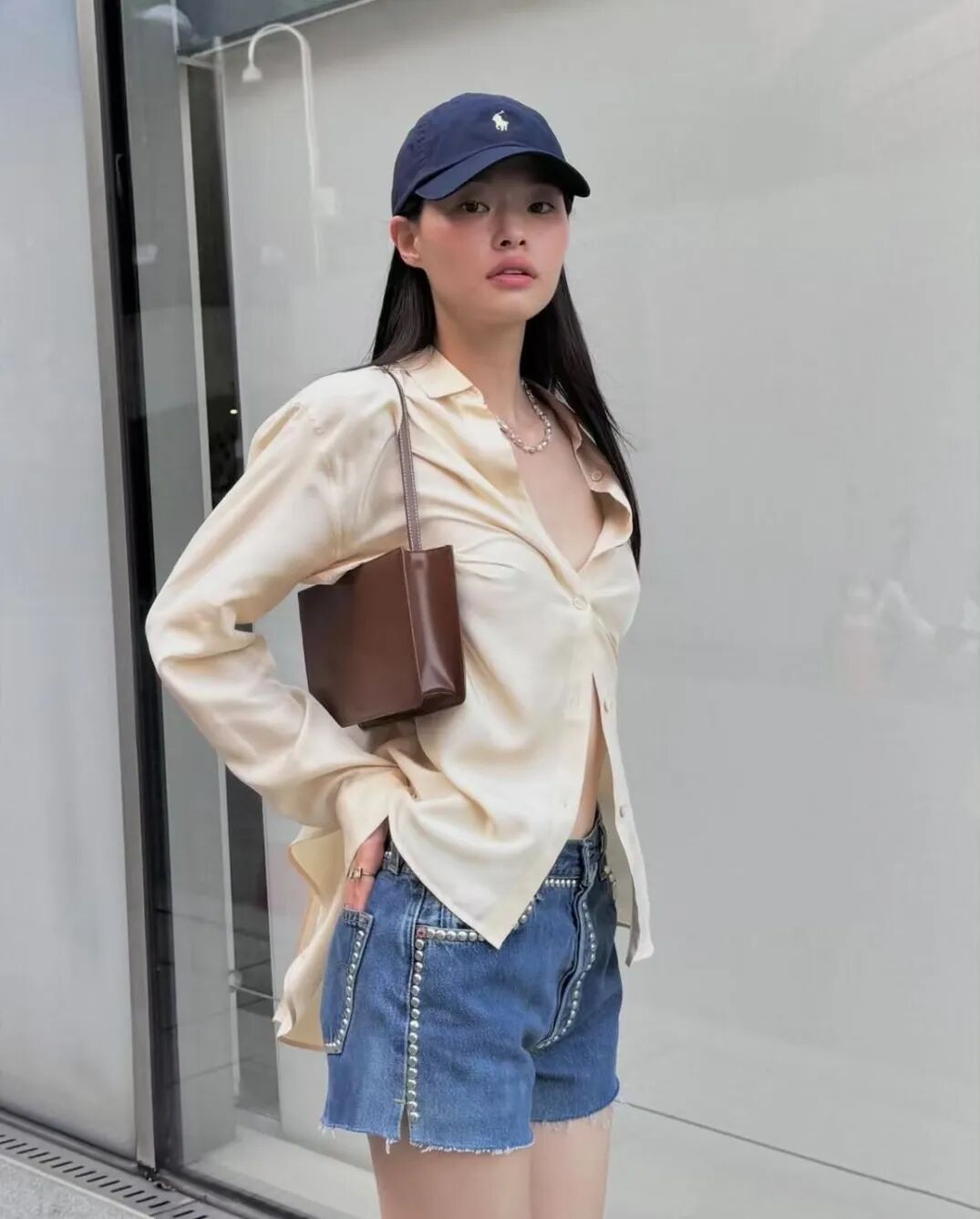模特郑夏荣常常pick的款式就是如此,哪怕再简单,都散发着慵懒时髦的腔调,让造型彻底脱离“学生装”的稚气,轻松展现出松弛随性的一面。