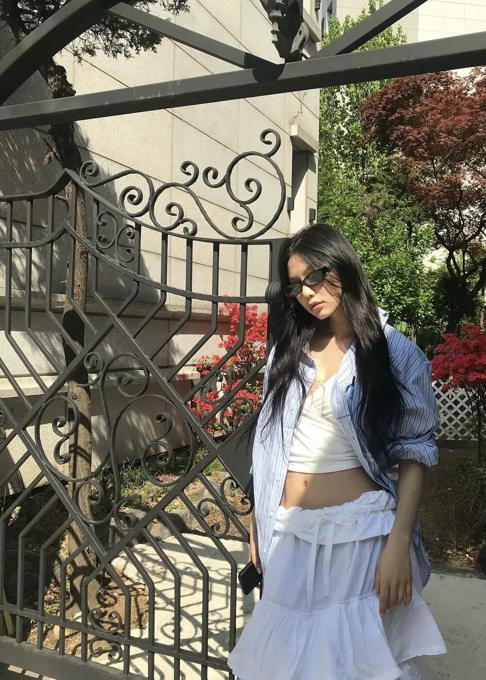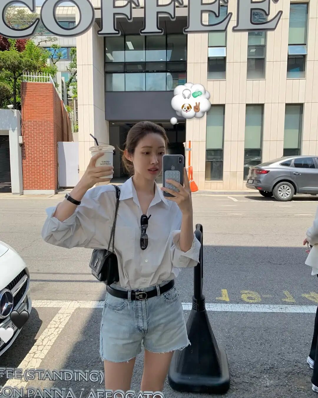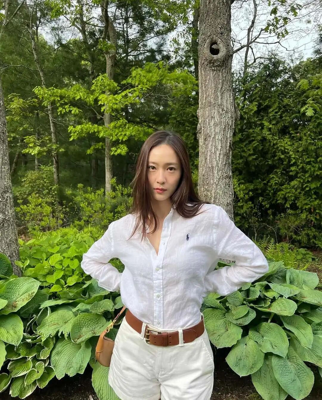 极具老钱气质的Ralph Lauren白衬衫也值得入手一拨,像郑秀晶这样搭百慕大短裤,配条宽皮带便能打造随性不羁的洒脱气质,搭配精巧配饰更是吸睛。