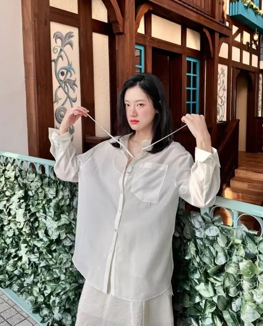 如果你更偏爱实穿又有辨识度的韩国设计师品牌,LOEUVRE绝对不可错过!尤其品牌的衬衫,更是凭借利落剪裁、高级面料和巧妙细节,成了郑丽媛、郑恩彩的私服首选,完美适配韩系松弛又讲究的穿搭哲学。
