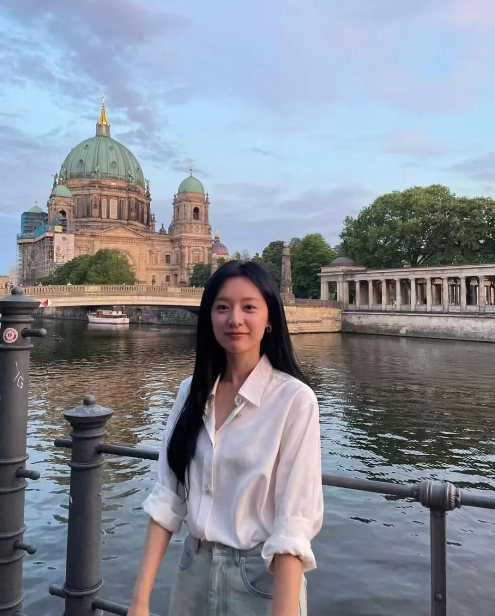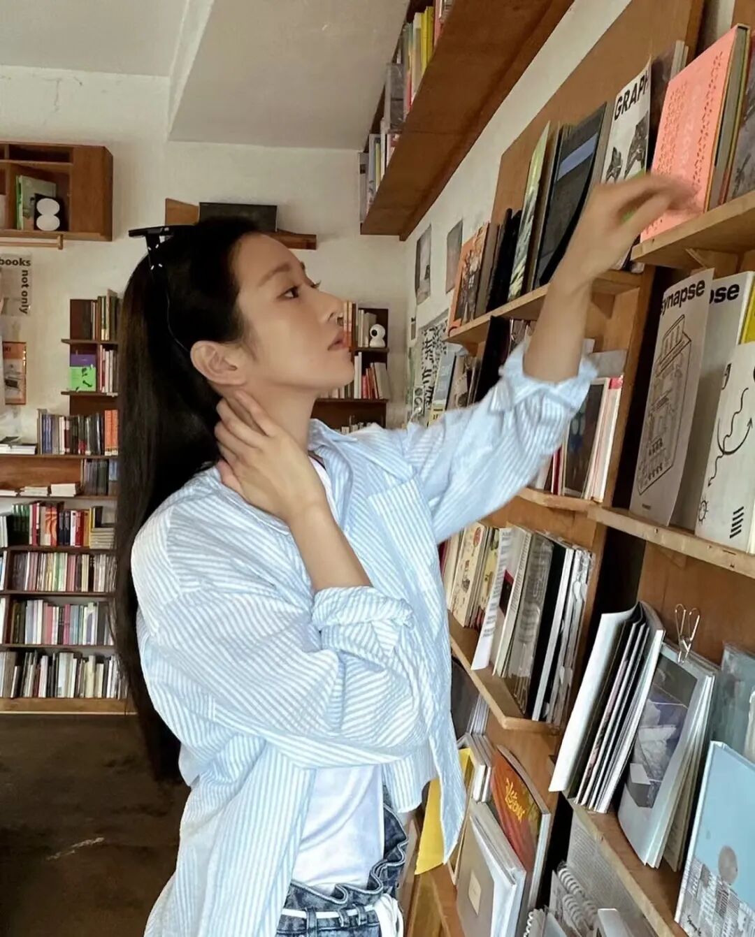 和金智媛一样,另一位氛围美人郑丽媛的出游照,则是为“岁月不败美人”这句话带来了更贴切的注解,她身上似乎从来都没有精修的紧绷感,也没有硬凹的少女态。