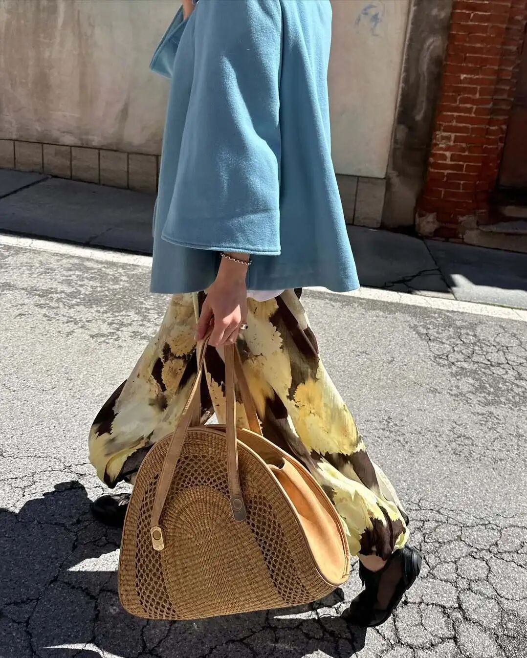除了草帽,同样呈现天然质感的还有各种各样的草编包,大容量设计满足度假出门的各种需求,且平衡了实用性与美观性,哪怕你身穿衬衣与牛仔裤的“正经”造型,一只草编包也能够瞬间让你甩掉“班味”。