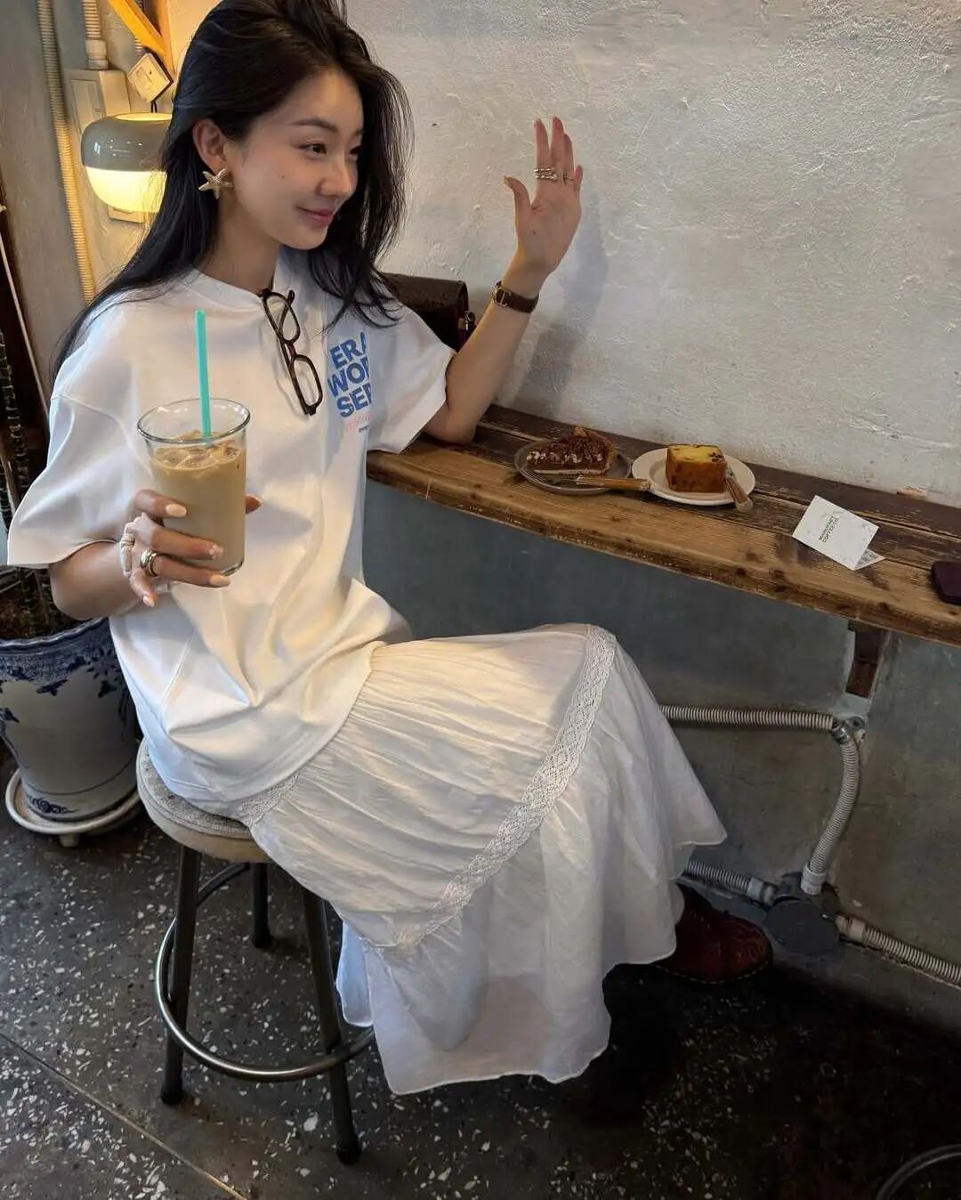 总之,白色半裙的兼容性也能够轻松适配不同语境,从工作日的正式,到周末出行的松弛,一条白色半裙都能恰当地融入其中。