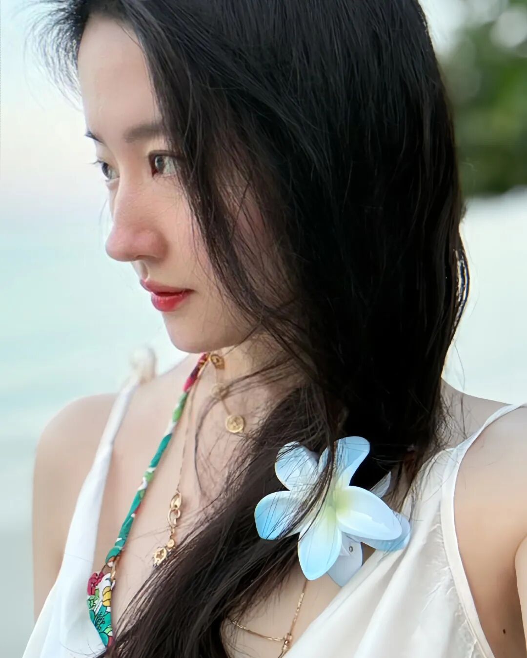 如果你的目的地是去海边,那刘亦菲所佩戴的花朵发夹再适合不过,瞬间让人联想到碧海蓝天的舒适与自由,带来明媚的夏日活力。