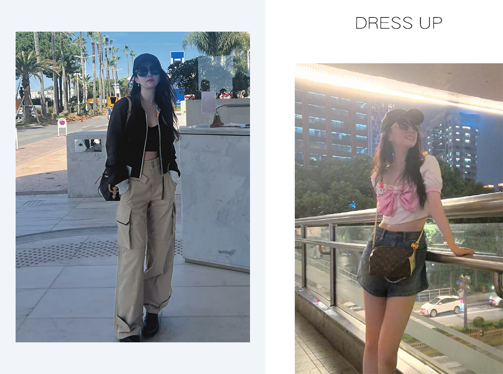 刘亦菲的日常穿衣更加偏向舒适自在,常常在出游中也会穿着裤装搭配,比如实用派的牛仔短裤,或是简洁利落的工装裤,都曾出现在她的假期生活中。