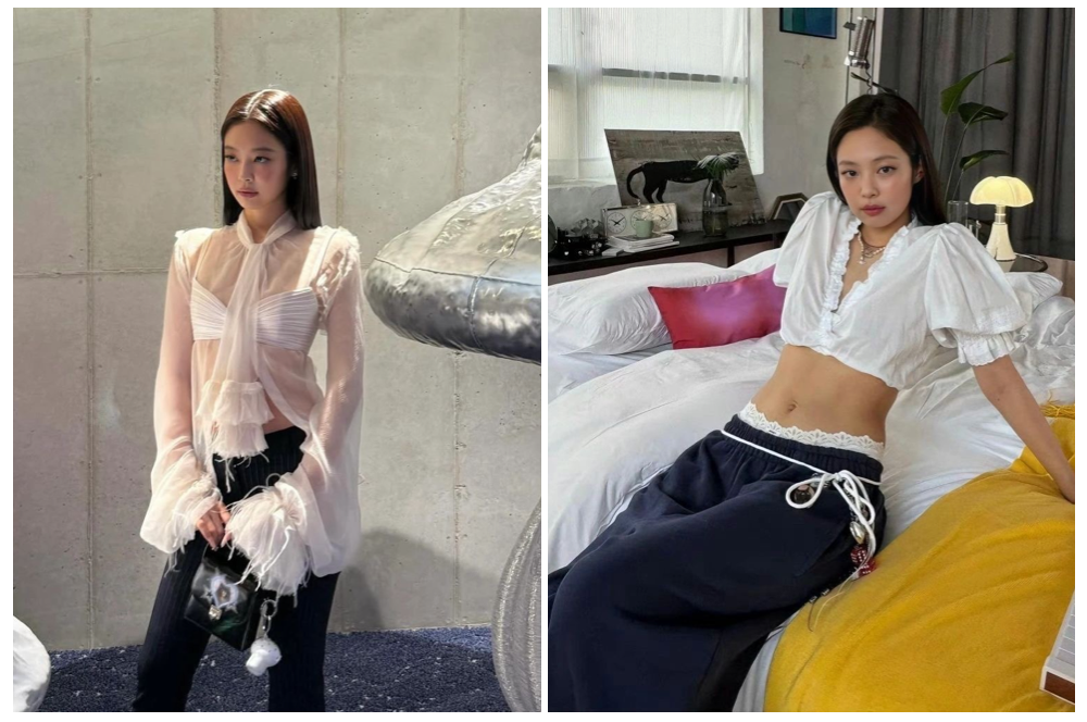 说到波嬉少女风,就不得不提其风格的代表人物Jennie,蕾丝、花边和抽绳少女感元素,都是她经常搭配的灵感,透视装配胸衣,蓬蓬袖深V露腰上衣,不同的设计亮点和穿搭方式,Jennie塑造出不同的风格。