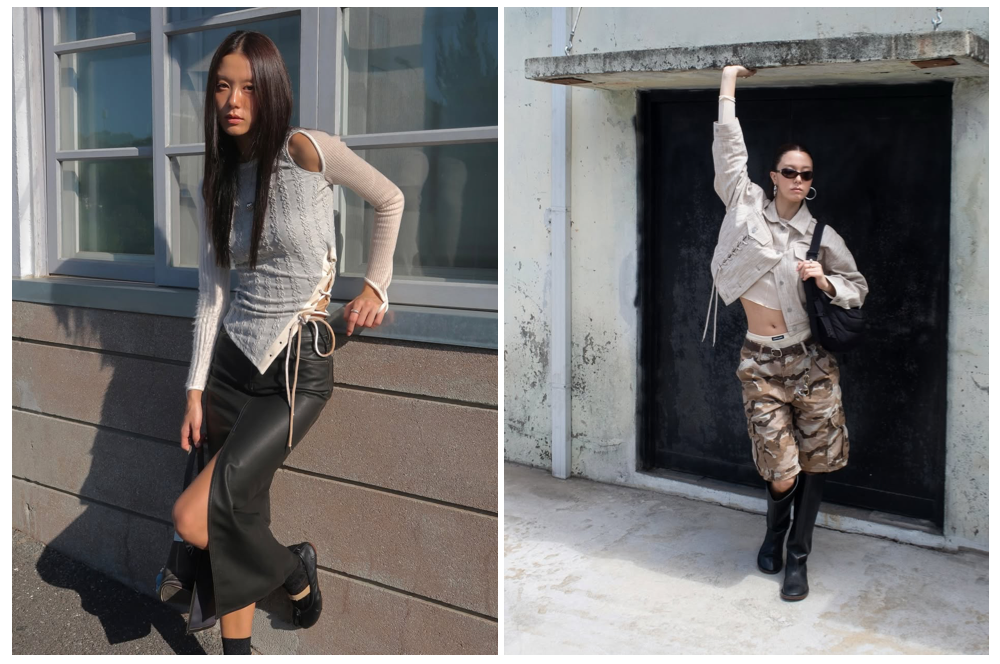 对于一些酷辣的造型,小蝴蝶结就成了均衡甜与酷之间的利器,当造型有迷彩短裤和皮质单品时,用细绳在细节处系一个蝴蝶结,让粗粝感中和一点甜度。