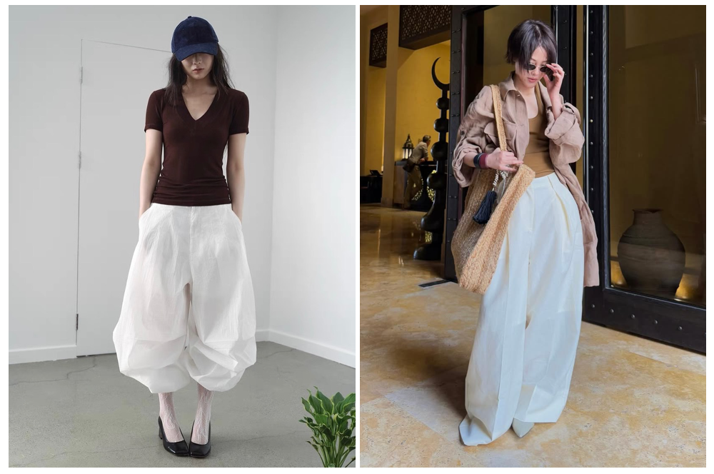 轻透的纱裤,会给整个造型增添一种平地生云的仙气Buff,看起来干净纯洁、恬静优雅,风吹过时裤管鼓成气球状,搭配平底鞋时,清新而充满活力。