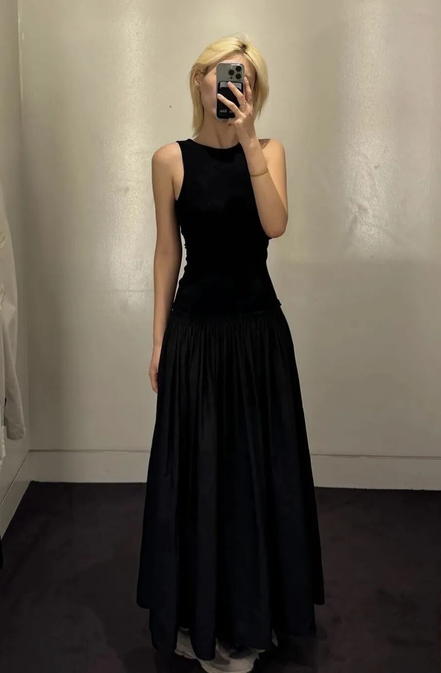 为什么无袖看起来更“贵”?首先是它本身对身体的高度信任感——剪去多余布料,保留的是廓形、肩线与结构上的精准表达。这种“less is more”的审美原则,在炎热中依然理性,在裸露中依然得体,这种风格,天然就和“高级”挂钩。