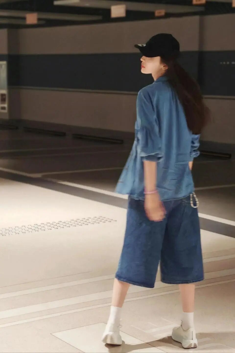 娜扎则是把七分裤穿出了降温的效果。深蓝浅蓝的搭配,加上七分裤宽松舒适的板型,随意又好看。