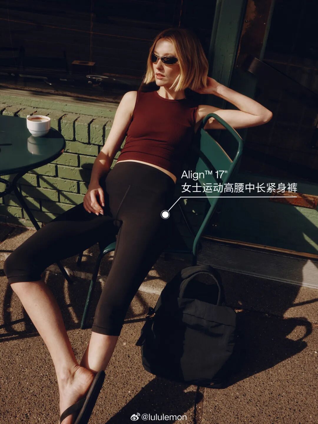像lululemon Align™系列紧身瑜伽裤,超高腰紧身裤型完美解决了七分裤常常被诟病的长度问题,腿部贴合包裹感十足,便于运动又很舒适,成为可以搭配各种基础款的明星单品。