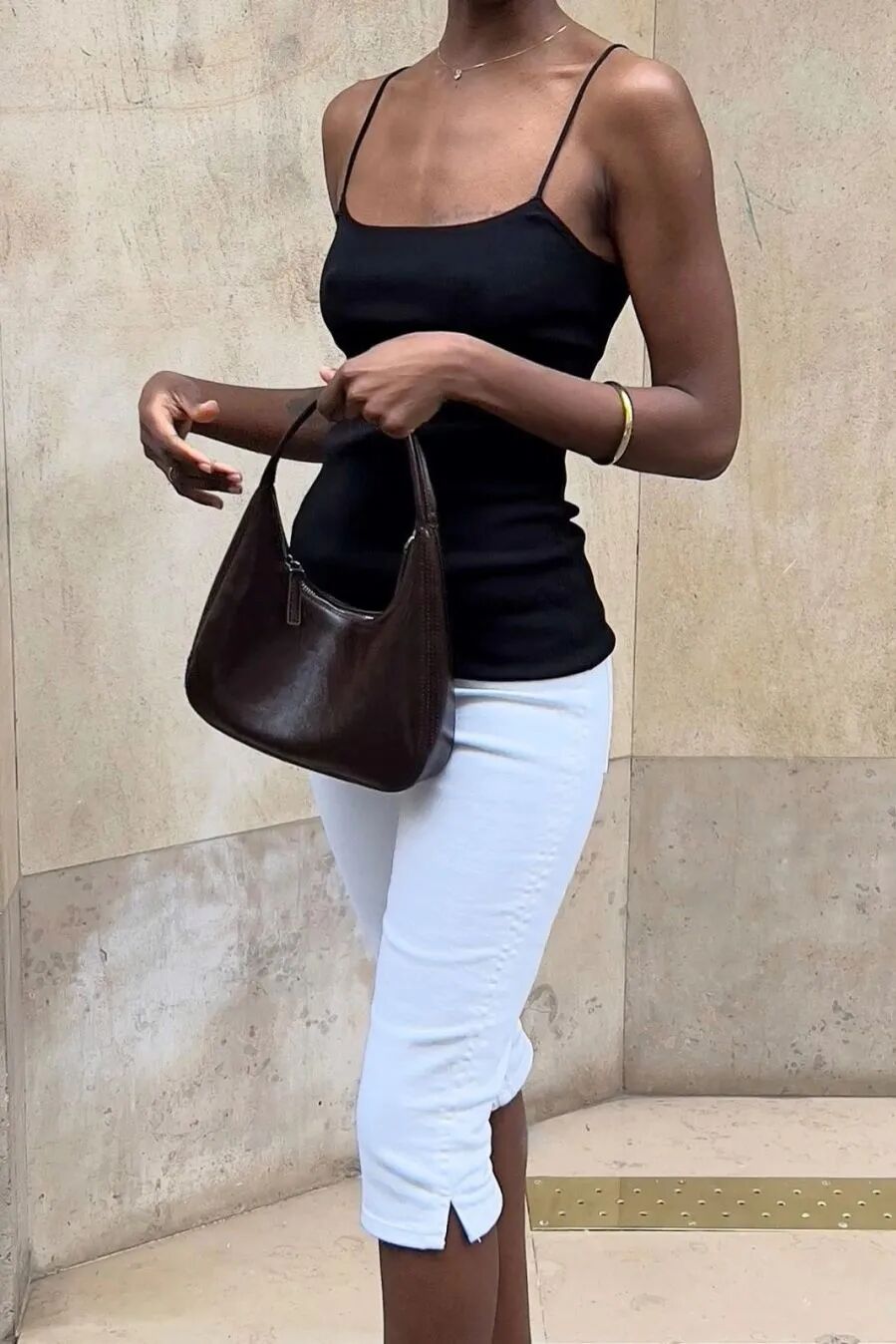 要论经典百搭,还得是黑色七分裤。自带极简风格的黑色基础款无论在哪个年代都是增添质感的存在。
