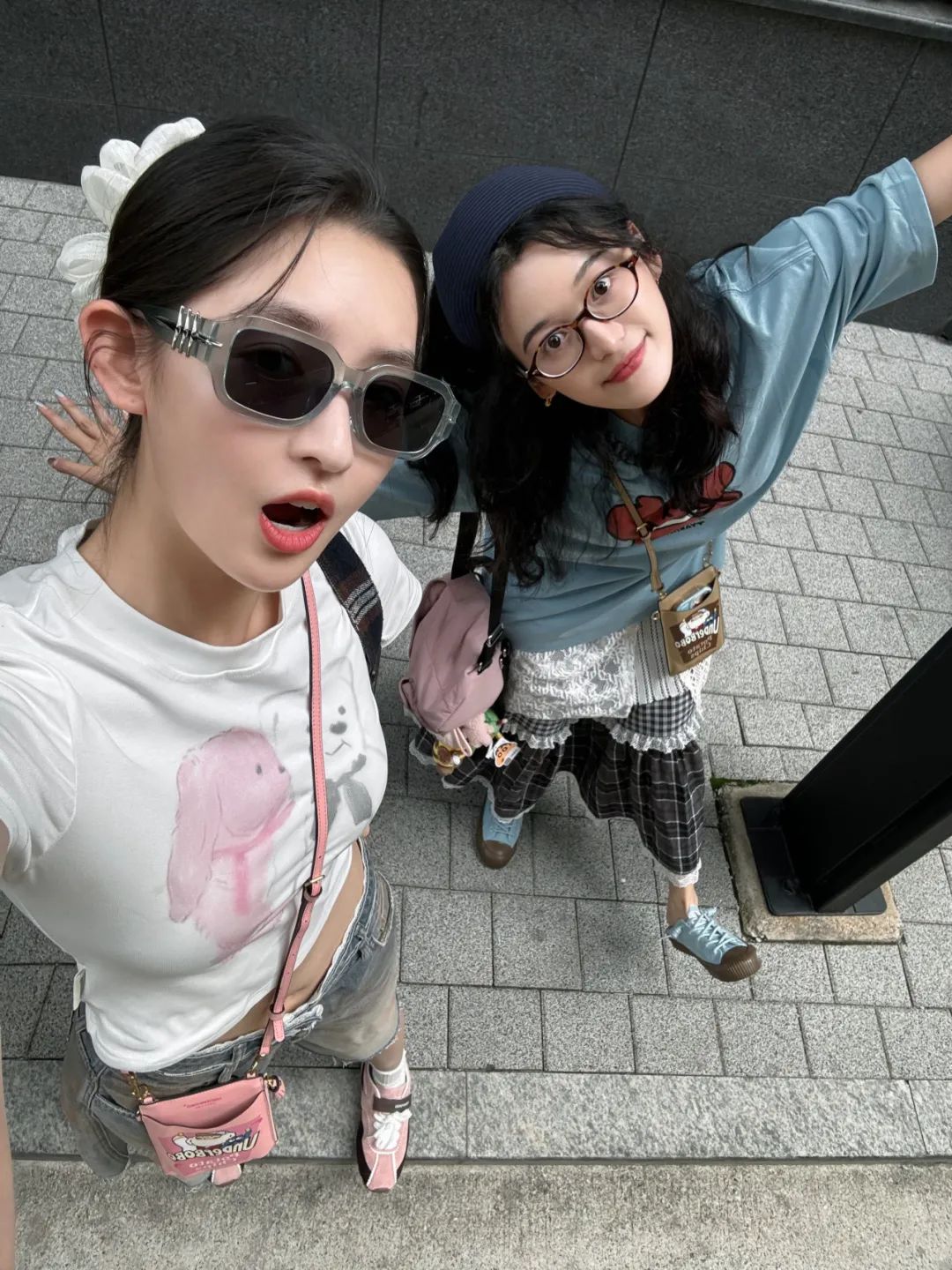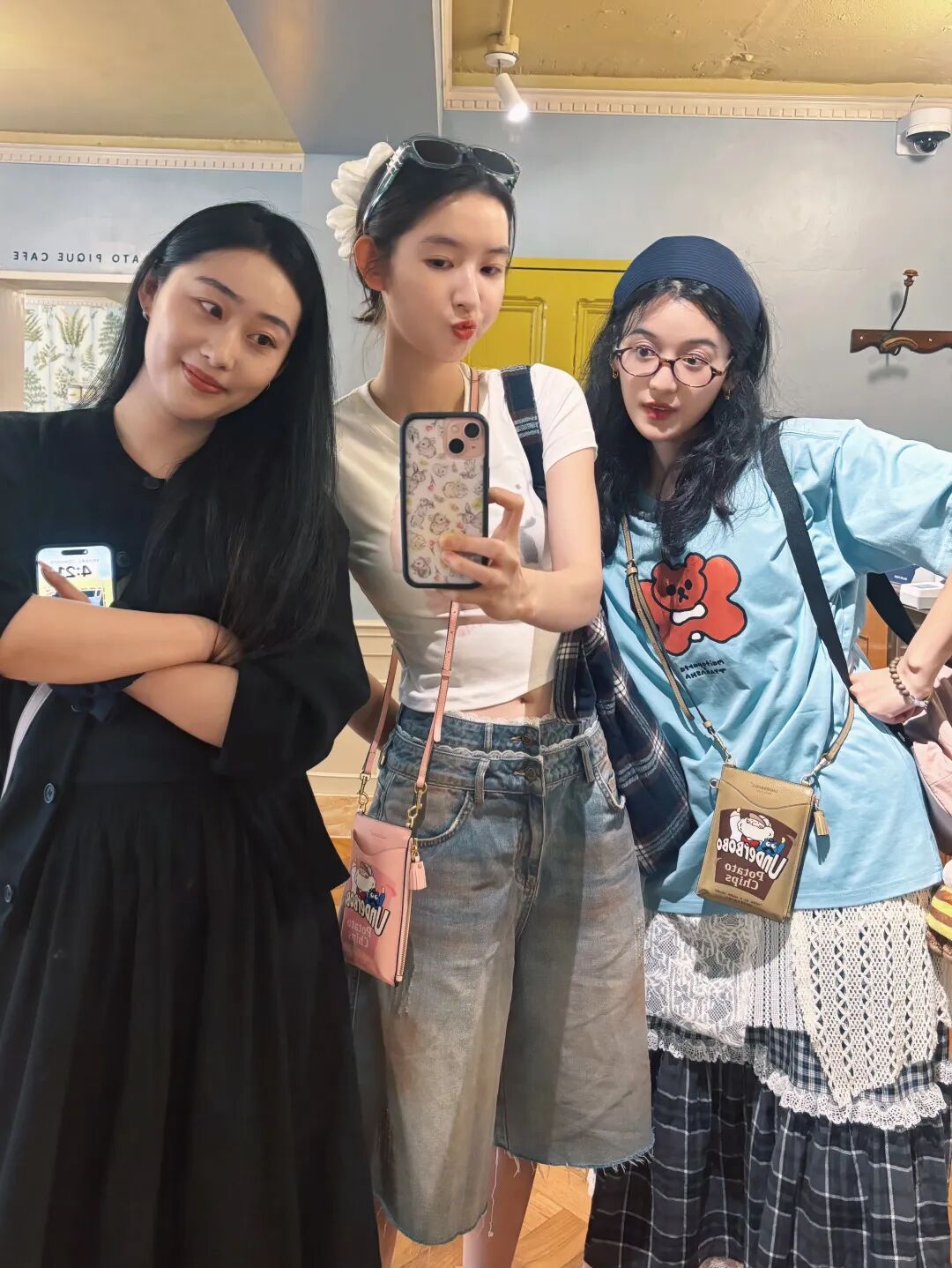 在《值得爱》里还原Y2K风格的王玉雯,私服穿搭也是千禧味儿十足。跟朋友出街的七分裤穿搭让人幻视平行时空的大吉。