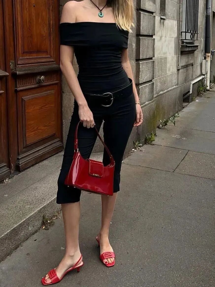 脚的露肤度越高越好,从小腿到双脚在视觉上延伸腿长,能够很自然地修饰比例。像尖头鞋、人字拖、穆勒鞋、小猫跟凉鞋这些精致利落的鞋子也能让整体穿搭优雅又轻盈。