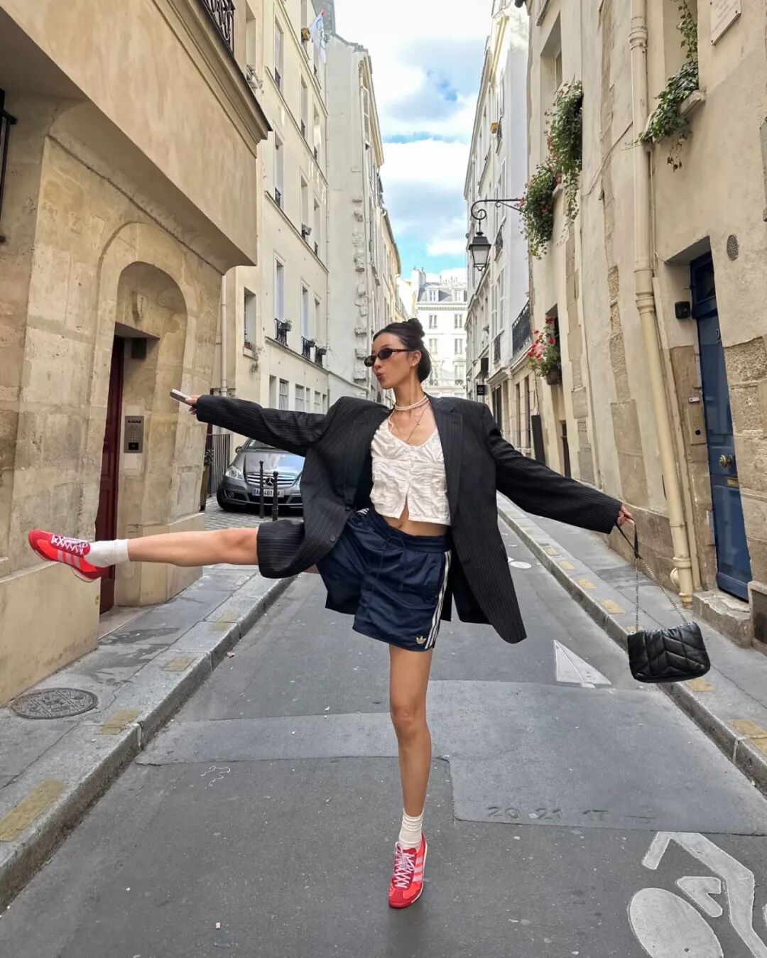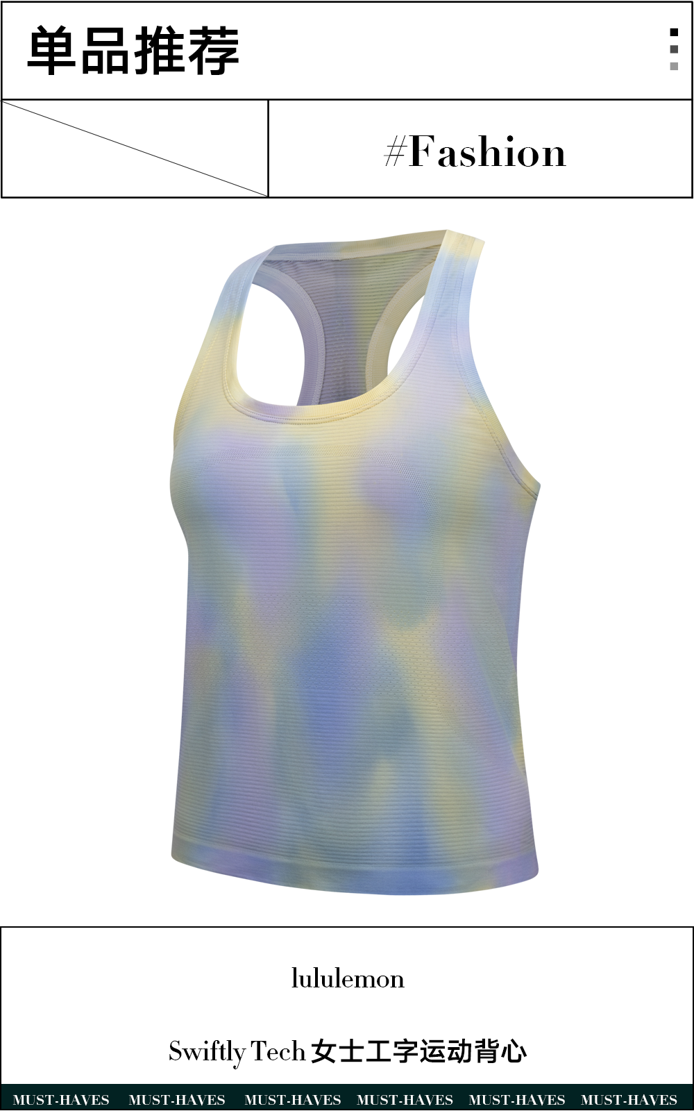 当健身服走入办公室,意味着从上班打卡开始,就对下班有了切实的期待。大家结束一天的工作后,走入健身房、网球场、瑜伽室……这何尝不是一种健康、活力的生活方式的转变呢?不过,在去“班味”这件事上,不完全是要穿成去运动的样子,用一部分的运动单品来打造松弛的观感和舒适的体感,才是正确的打开方式。可以像贾玲一样,用lululemon的Swiftly Tech女士工字运动背心来在All White底色的基础上强调多元风格,叠搭穿出丰富层次,自然晕染的清新色彩太适合夏天了!用一件西装外套来中和运动服的休闲属性,是适合绝大多数场合的穿法。西装的版型一定要是宽宽大大的H型,硬朗的线条可以弱化掉运动服的轻软,职场人的气场和舒适可以同时拥有。衬衫也是跟运动服很契合的单品,它风格跟西装类似,但会更加轻松休闲,当作外套直接穿去健身房,也不会显得奇怪。如果你想再突破一点,完全打破风格的壁垒,可以在鞋子上做功课。把运动鞋和运动服这对CP解绑,换上其他属性的鞋,会有巨大的风格转变。穿上硬挺的长靴,马上酷到没边儿;而穿上精致小巧的玛丽珍,是甜美女大来了。在都市运动风的基础上更进一步地增加精致感,就需要借助配饰来打造。可以遮(加班导致的)憔悴黑眼圈的墨镜是标配,同时具有运动感和时髦度的束发带是进阶,它跟棒球帽一样,是不洗头发也能保持表面清爽的秘密。小巧的耳环、项链这些配饰,则是让精致度更上一层楼,同时去掉“班味”和疲惫。毕竟,认真把配饰挨个儿戴好的人,有哪个不热爱生活?对上班人来说,真正的松弛从不意味着大牌的Logo,而真正的自由并不被工位的方寸所限制。穿非常规意义的工服,过不被定义的生活,是当代年轻人的态度宣言。大家用自己的着装语言对刻板的职场印象说不,办公室不再是身体的禁锢,而是自由的旷野,运动服就是穿越这片旷野的“战袍”。当以往的功能性服饰以另外一种角色出现在办公室,坐在工位的打工人也变得更有活人感。自带阳光活力滤镜的运动服,再也不是健身房的专属,穿上它,何尝不是一种对更健康、更自由生活的向往?而现在,就可以实现。这款lululemon Swiftly Tech女士工字运动背心采用轻盈透气的速干面料,质地柔软且具芯吸性能。四面弹力的设计能让你在运动时自在伸展,不受束缚。工字型背心清新的渐变色印花活力百搭,无论是健身房运动或日常出街都能轻松驾驭。