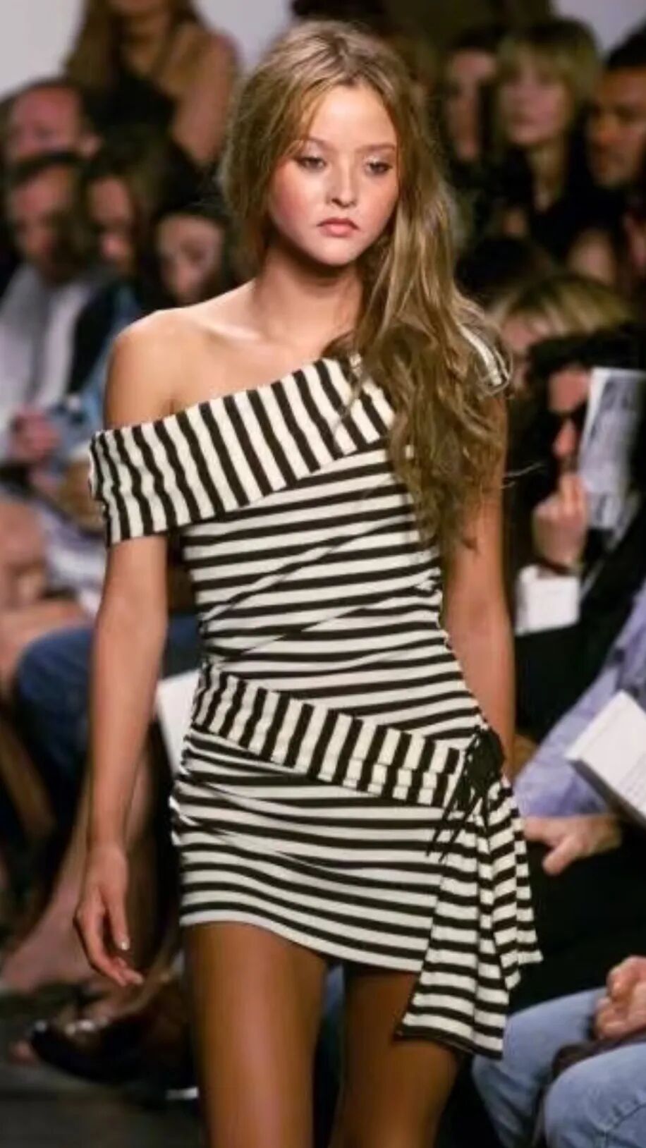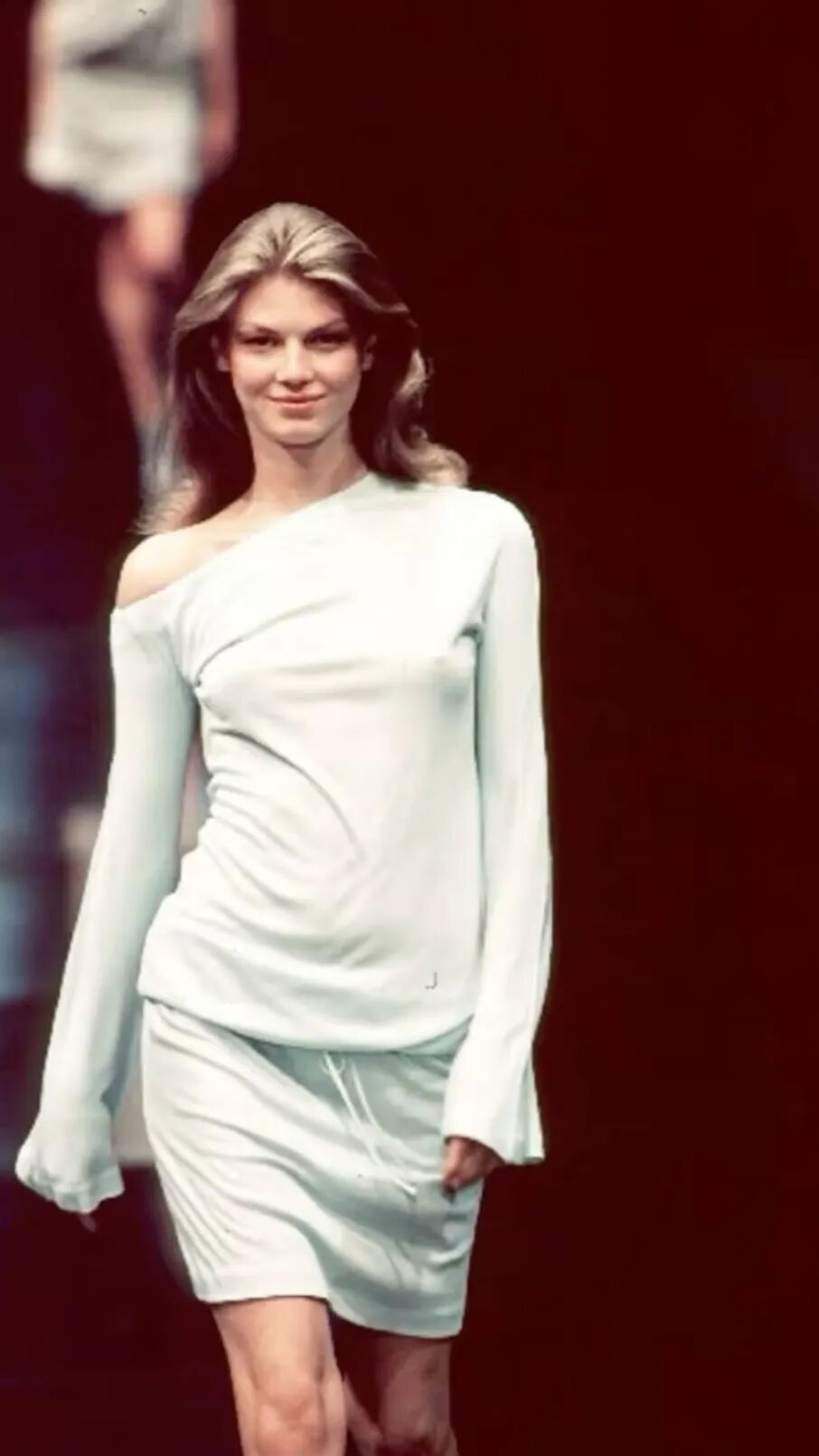 斜肩T不仅是造型结构的游戏,它还成为“性感”语汇的重写方式。在 Alexander Wang 的设计语言中,斜肩不再只是女性的专属,它被涂抹上街头文化的灰度色彩,破坏剪裁与宽松下装,变成了中性而冷酷的时尚宣言。