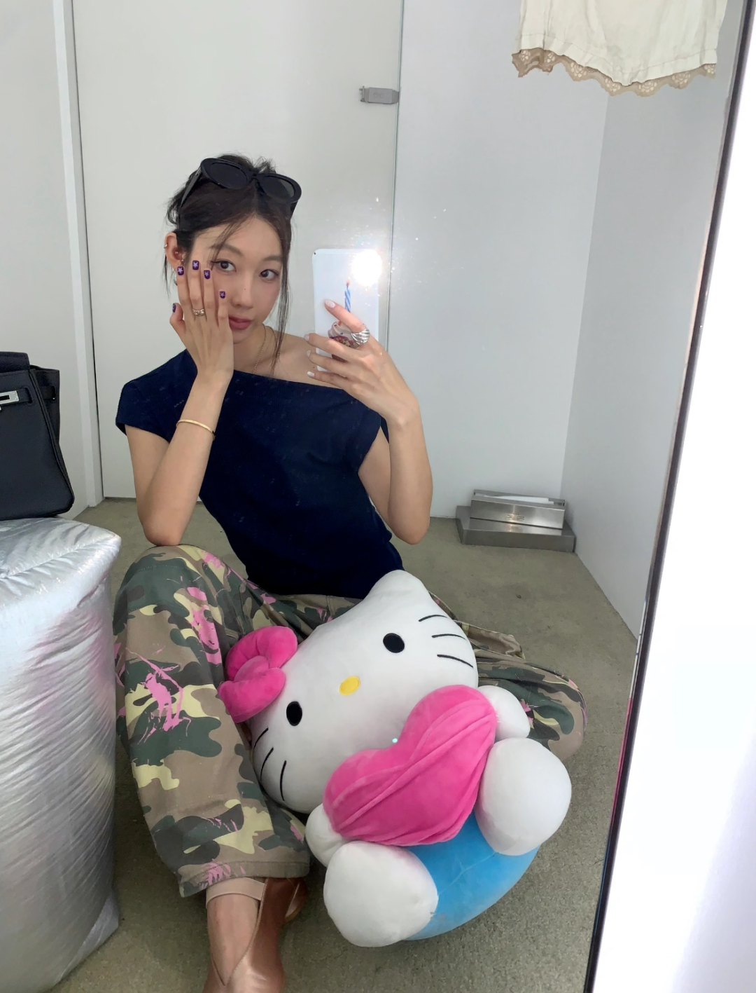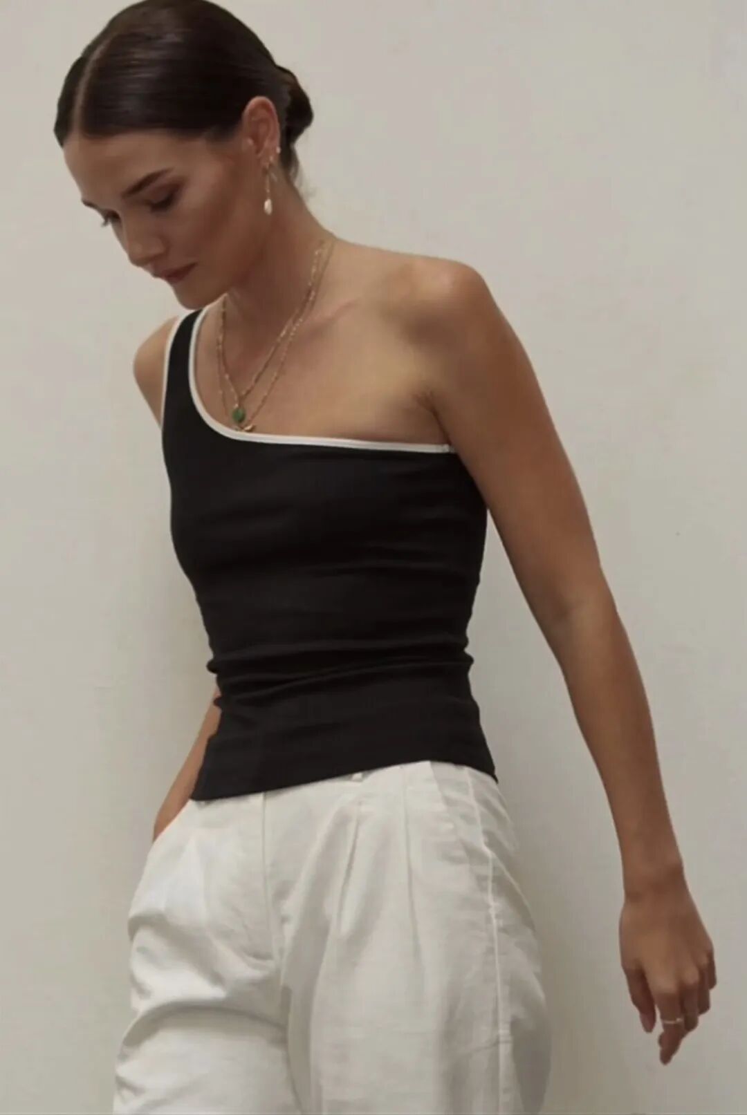 在这个热浪翻滚的夏天,斜肩T恤悄然登上了时髦舞台的C位。它不再是单纯的剪裁设计,而是一种态度的表达——慵懒却不随意,性感却不张扬,凭借一侧微露的锁骨与肩线,轻松释放女性的柔韧与力量感,在极简中营造出难以忽视的视觉张力。